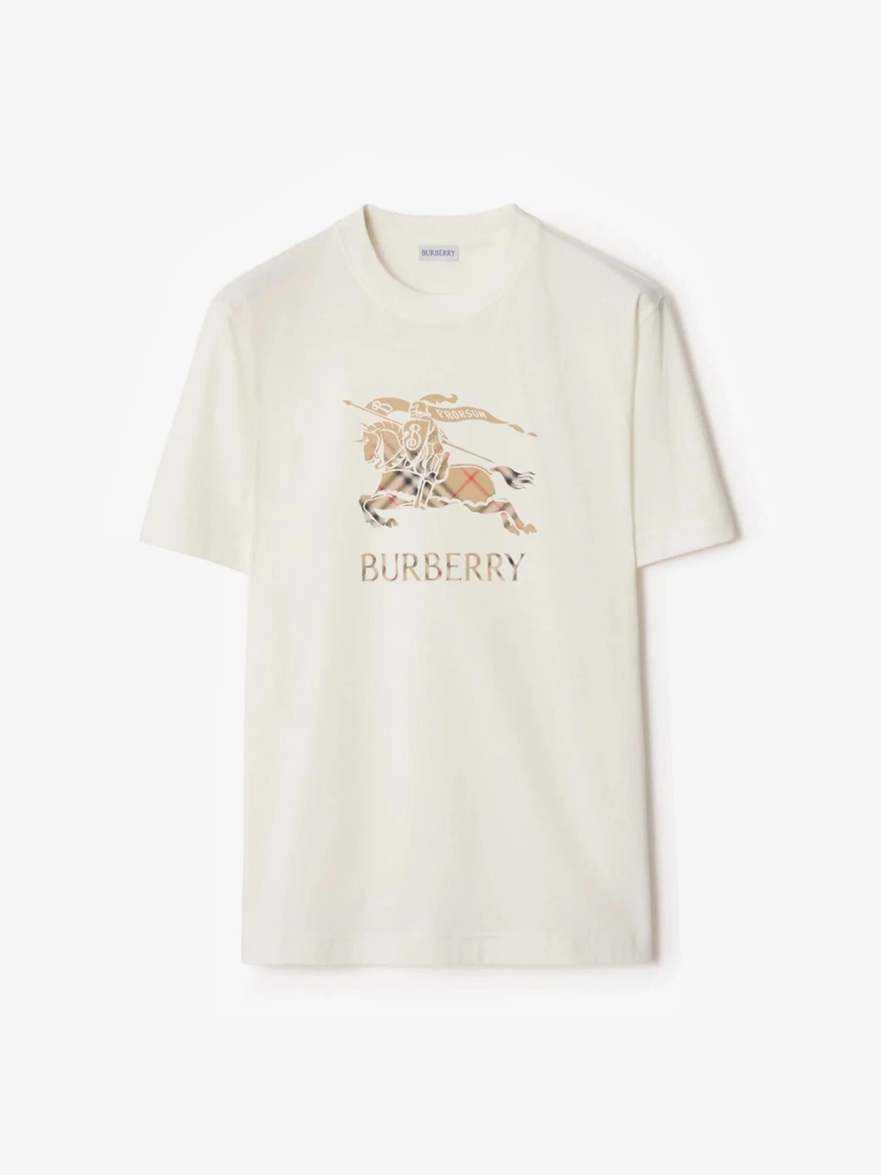 SKU: 553-004543 01 BRAND ID: 8119014 Burberry T-shirt By Burberry • Ribbed finish at the neck • Regular style • Brand logo printed on the chest • Made from cotton knit • Short-sleeved T-shirt • Round neck • Composition: 100% organic cotton • Made in: Portugal