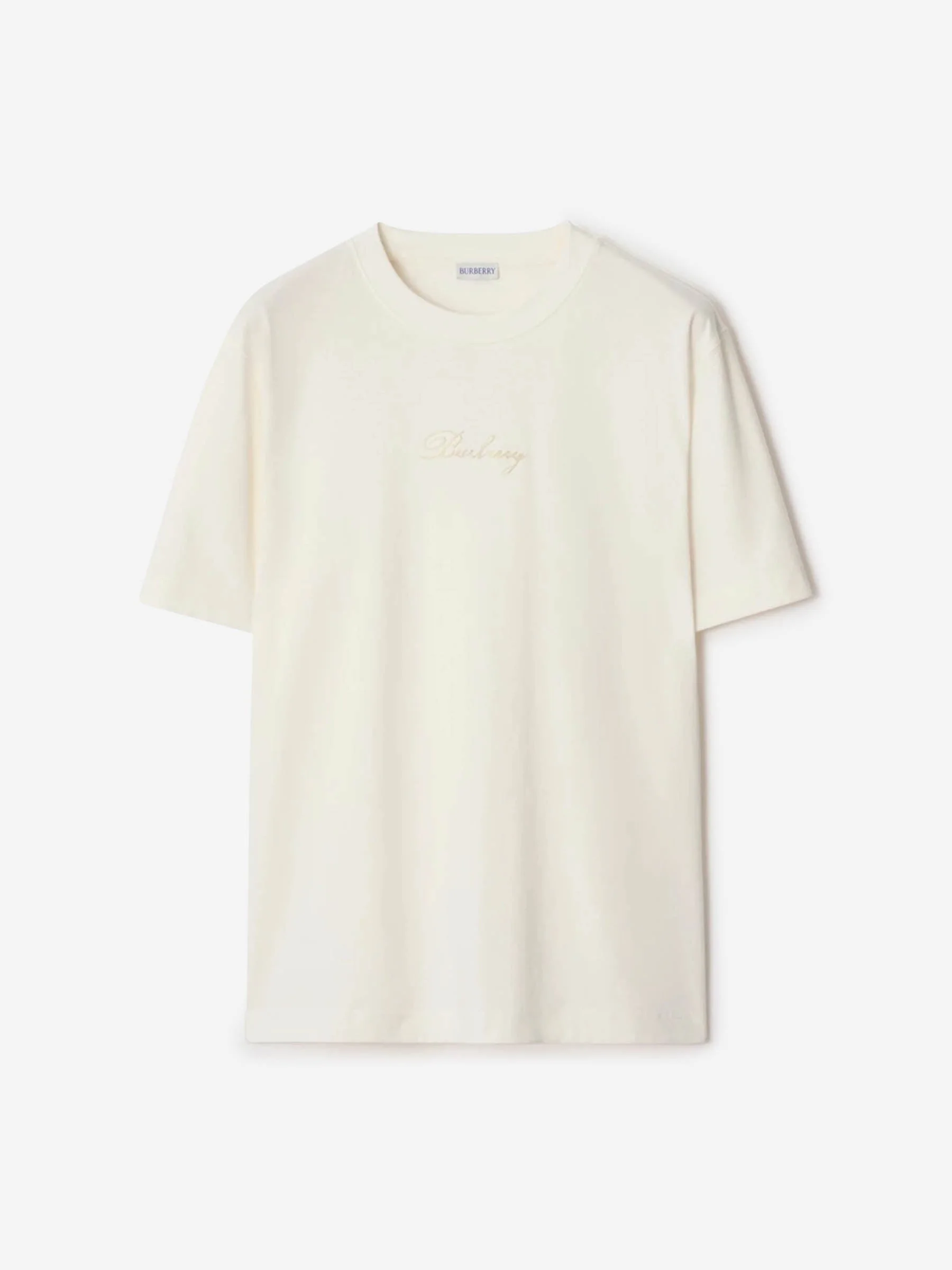 SKU: 553-004547 01 BRAND ID: 8119080 Burberry T-shirt By Burberry • Ribbed finish at the neck • Burberry logo embroidered on the chest and back • Made from cotton fabric • Short sleeve • Round neck • Composition: 100% cotton • Made in: Portugal