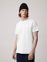 SKU: 553-004065 02 BRAND ID: 1420M2 T-shirt by Canada Goose • Regular fit • Made of a cotton fabric • Embroidered logo on the front • Ribbed collar, cuffs and hem • Rounded collar • Short sleeve • Straight hem Double-stitched seams on sleeves and hem Made in Portugal Back length: 70 cm100% Cotton