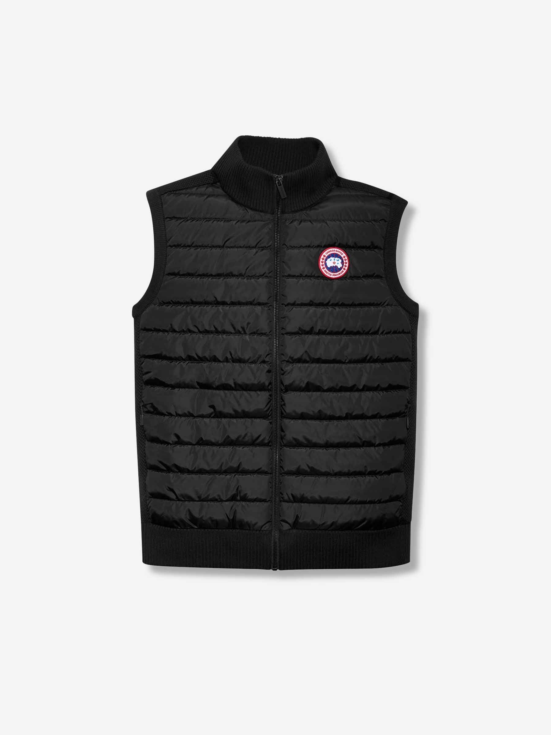 SKU: 544-000609 01 BRAND ID: 6829M Hybridage Padded Vest Chaleco By Canada Goose • High ribbed collar • Embroidered logo detail on the chest • Regular fit for enhanced comfort • Interior lining providing thermal insulation • Includes side pockets with zipper closure • Back crafted in wool yarn • Crafted from recycled ripstop nylon and features a lightweight down filling • Sport style • Front closure with two-way zipper Composition: 100% Nylon, 100% Wool Made in Romania
