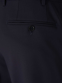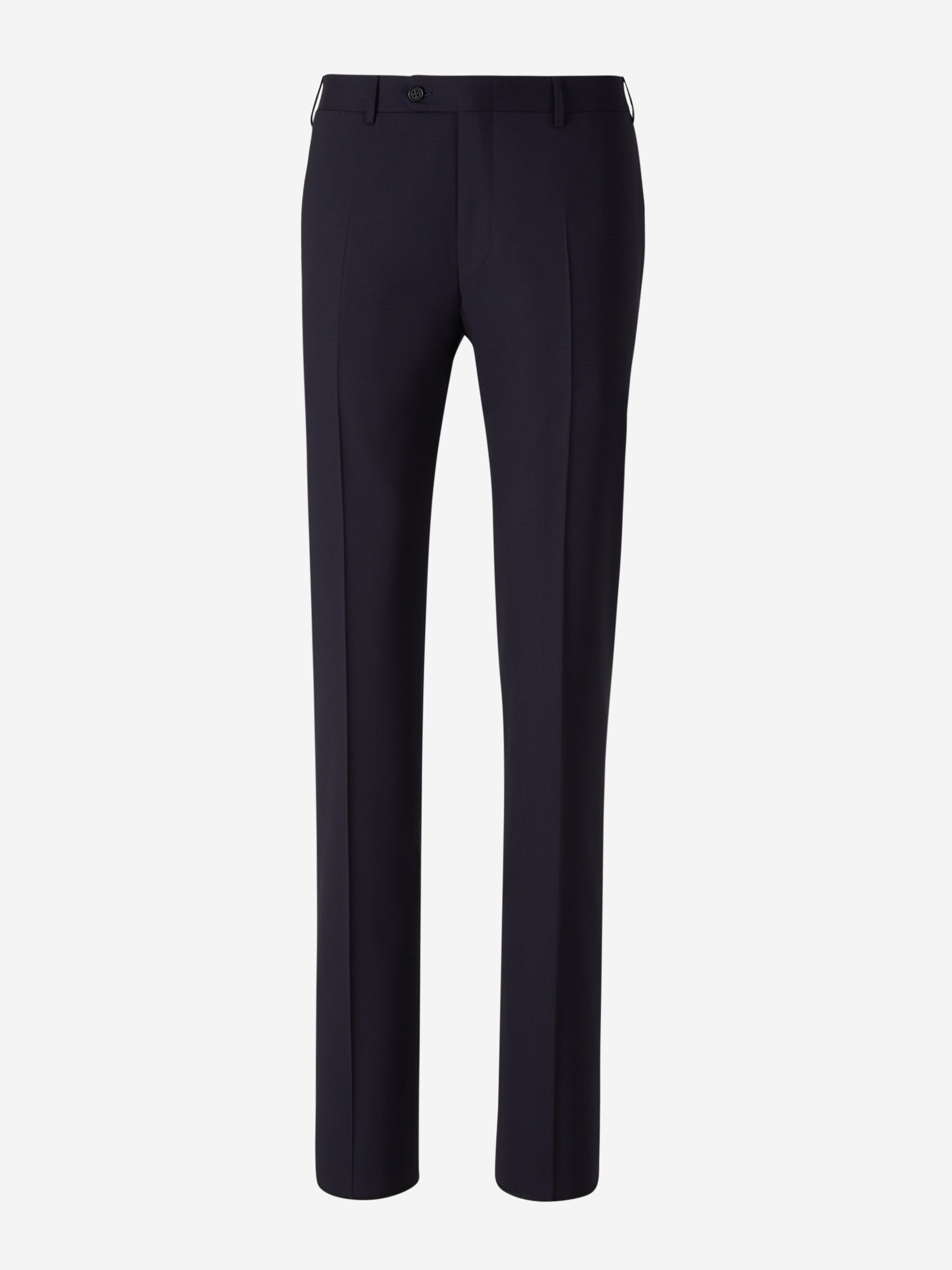 SKU: 321-000347 01 BRAND ID: 71019 Trousers Canali • Classic fit • Plain wool fabric • Navy colour • Two darts • Button and zip closure • Belt loops • Two back welt pockets Made in Italia Model size: 50 Inside leg length: 81 cm, bottom width: 19 cm95% Wool, 5% Elastane