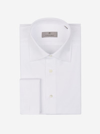 SKU: 403-000210 BRAND ID: 60135-01 705 PD Canali shirt • Slim fit • Cotton fabric • White color • Fixed collar stiffeners • Italian collar • Plain buttoning • Mother-of-pearl buttons • Double rounded cuff • Plain back Made in Italia 100% Cotton