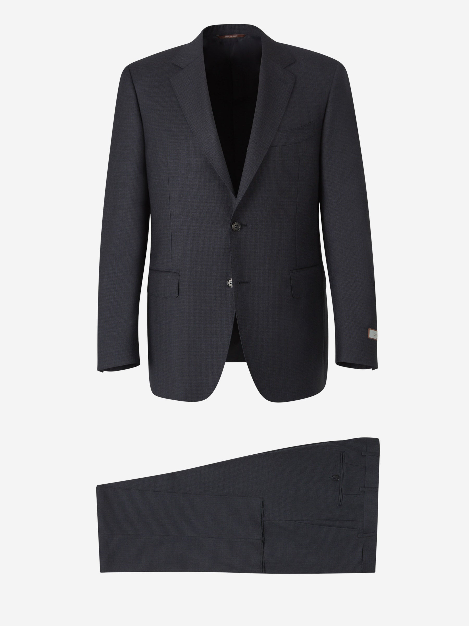 SKU: 312-002877 01 BRAND ID: L 12280/19 -R Plain Wool Suit Suit By Canali • Collar with lapel • Pockets with flap at the front, pochette and two inner pockets • Classic fit • Lined with silk for added comfort • Trousers with front and back pockets with button • Cuffs with buttons • Made from wool fabric • Straight Suit • Two-button straight closure Composition: 100% wool Italy