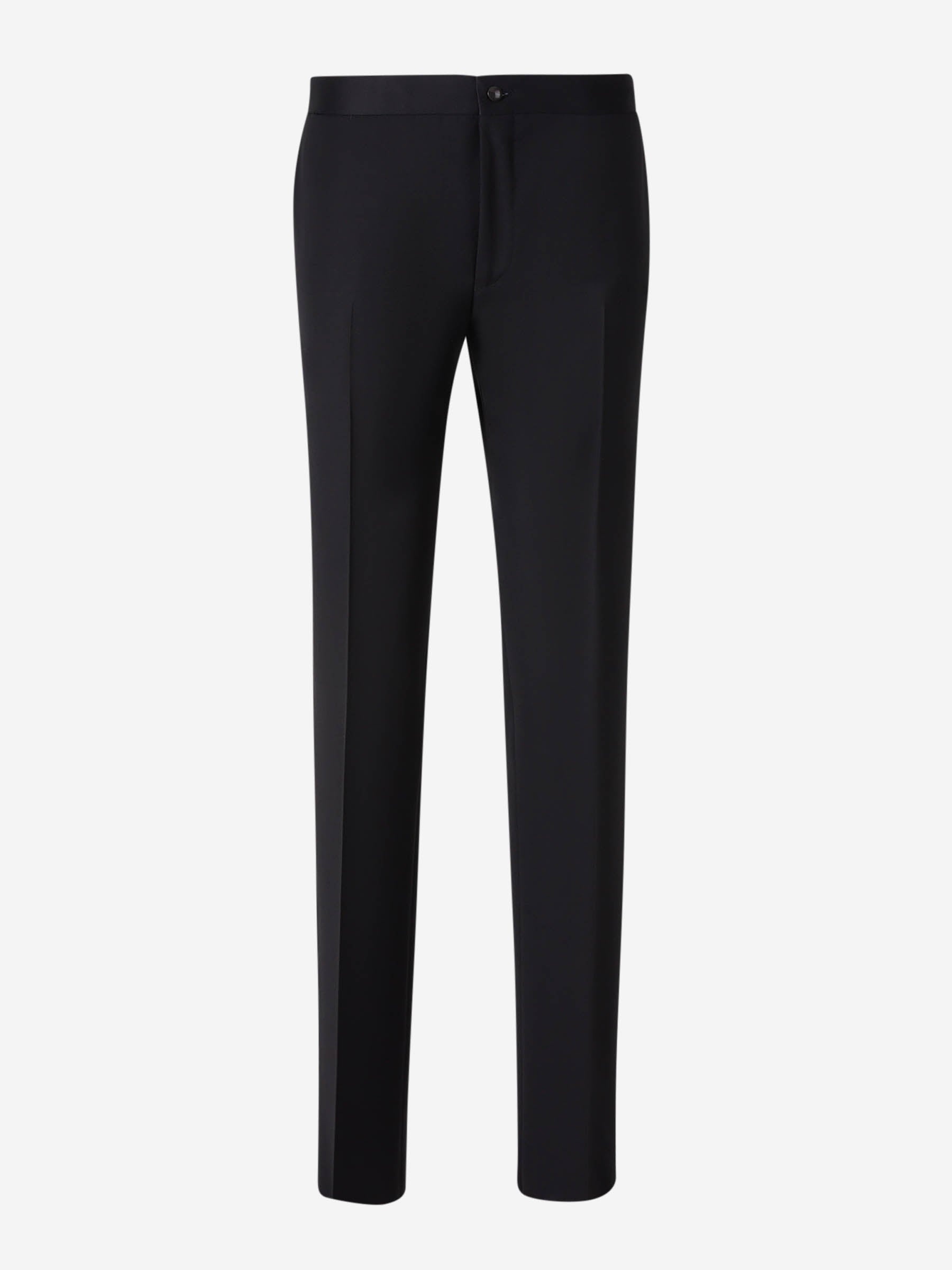 SKU: 321-000363 01 BRAND ID: 00000/39 Pants by Canali • Classic fit • Made of wool fabric • Decorative satin strip on the sides • Two side pockets • Zip, hook and button closure • Belt loops • Two back welt pockets • You can book a private appointment with us so that we can take your measurements and customize it for you. Made in Italia 117 cm 100% Wool