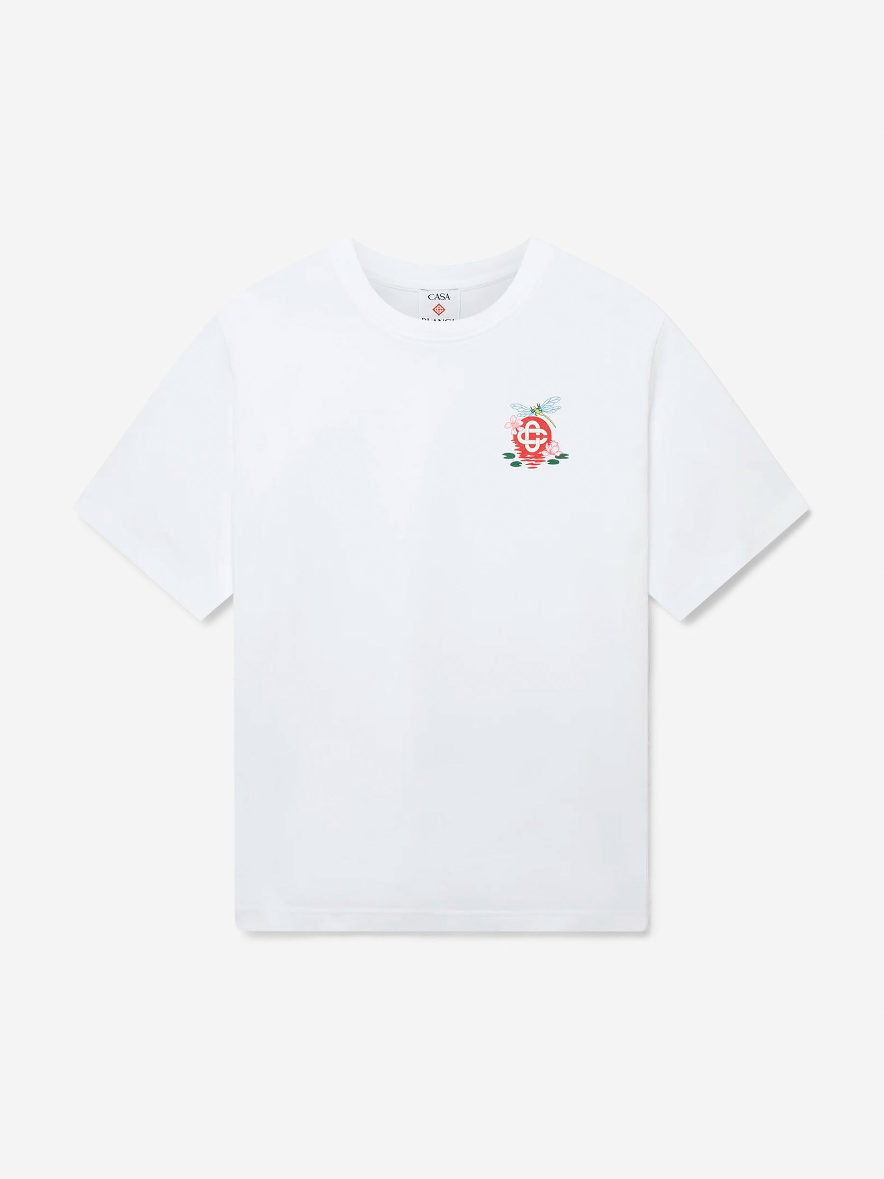 SKU: 553-004376 01 BRAND ID: JTS-044-08 Graphic Cotton T-shirt T-shirt By Casablanca • Ribbed finishes at the neck • Contemporary design with an elegant touch • Exclusive graphic print • Made from high-quality cotton, offering a soft and light touch • Graphic Cotton T-shirt • Round neck Composition: 100% cotton Made in: Portugal