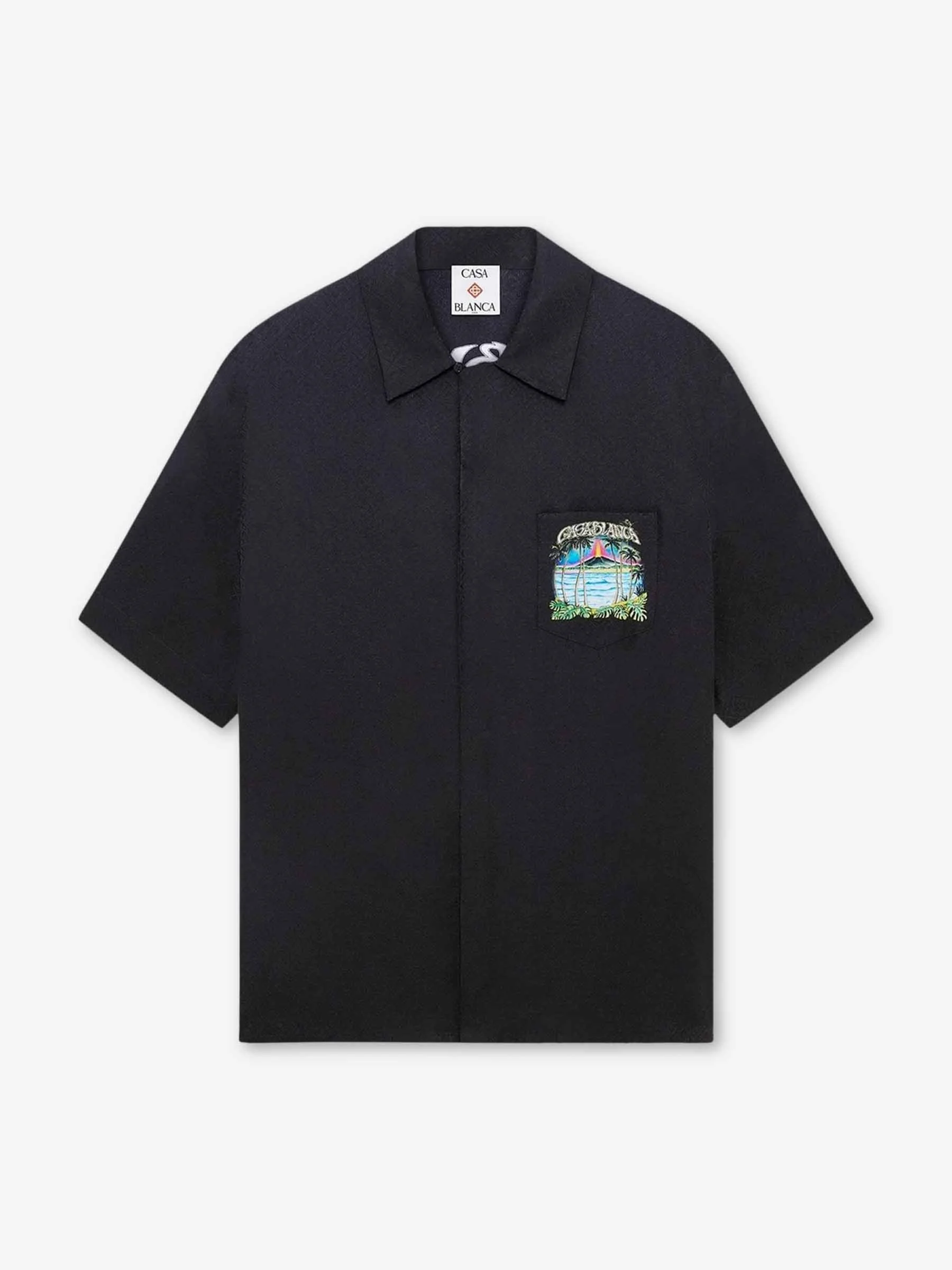 SKU: 532-000735 01 BRAND ID: M-SP26-SH-003 Shirt By Casablanca • Printed Silk Shirt • Relaxed fit with slightly oversized shoulders and standard length • Made from natural silk with a satin finish and flat seams for an elegant drape • Cuban collar with wide lapel • Front button closure with matching mother-of-pearl buttons • M-SP26-SH-003 • Composition: 100% silk