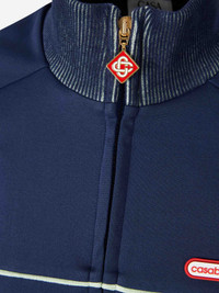 SKU: 512-002734 01 BRAND ID: JTP-422-02 Zipper Logo Sweatshirt Sweatshirt By Casablanca • Logo patch of Casablanca • Pockets in seams with zipper • Made from high-quality wool, this coat offers warmth and sophistication with every wear • Piping in mint color on the chest, back and front • Zipper closure with diamond logo pull • Funnel neck with intertwined CC monogram Composition: 54% polyester 46% cotton Portugal