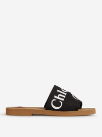 SKU: 800-005402 01 BRAND ID: C22U188Z3001 Sandals by Chloe • Mules • Cotton canvas strips with logo print • 1.5cm rubber sole • Slip-on design • Square toe 100% cotton