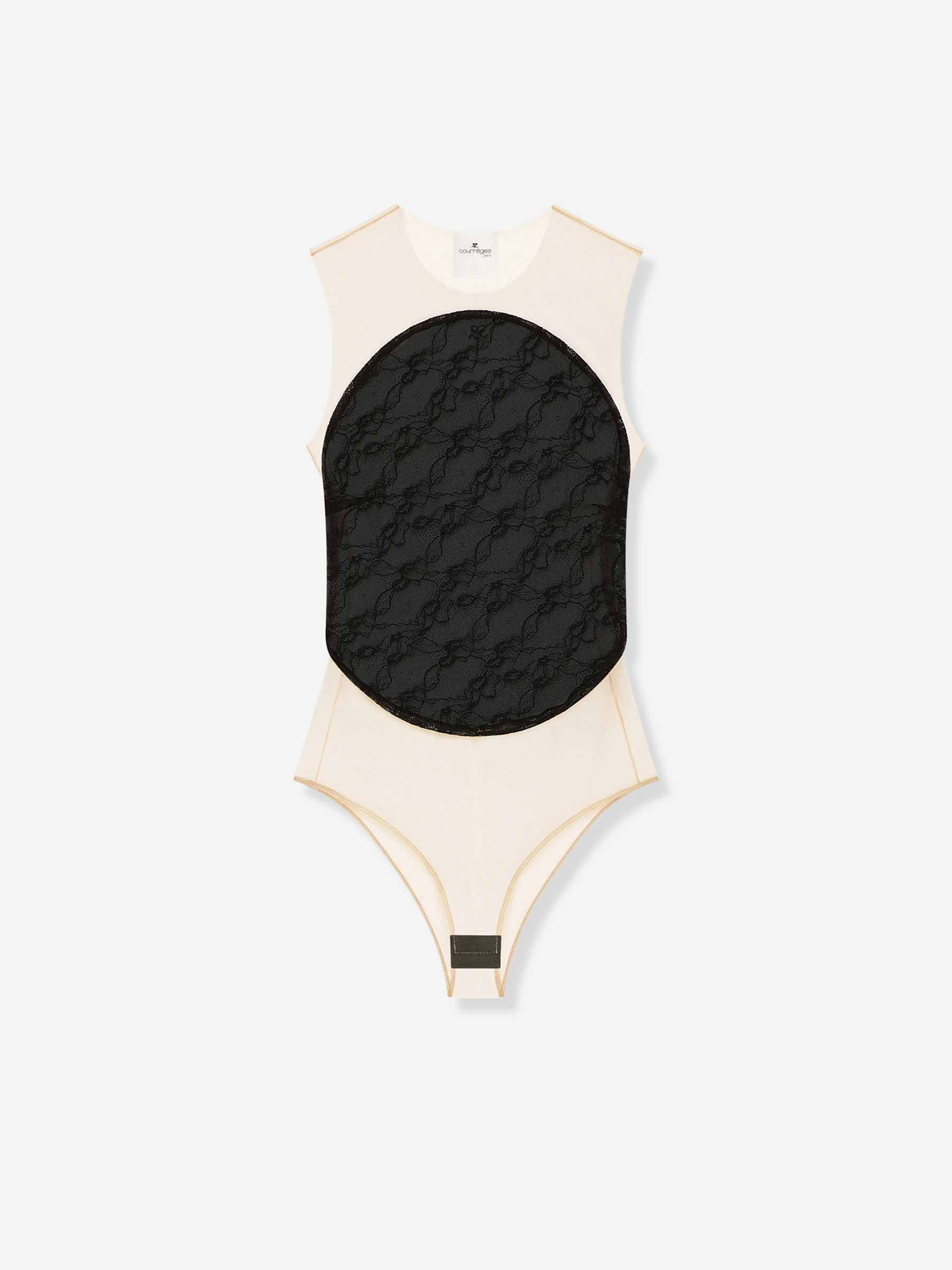 SKU: 703-002455 01 BRAND ID: 325JBD143PA0132 Body Illusion Circle Body By Courreges • Strap design • Regular fit • Circle detail with lace fabric at the front • Made from a blend of polyamide and elastane • Body Illusion Circle • Closure with hooks • Round neck without hood Composition: 90% Polyamide, 10% Elastane Made in: Italy