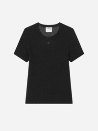 SKU: 782-001665 01 BRAND ID: 125JTS017JS0069 T-shirt by Courreges • Made of mesh fabric • Round neck • Short sleeve • Tone-on-tone embroidered logo • Ribbed sleeves Made in Portugal Back length: 52 cm52% Polyester, 48% Cotton
