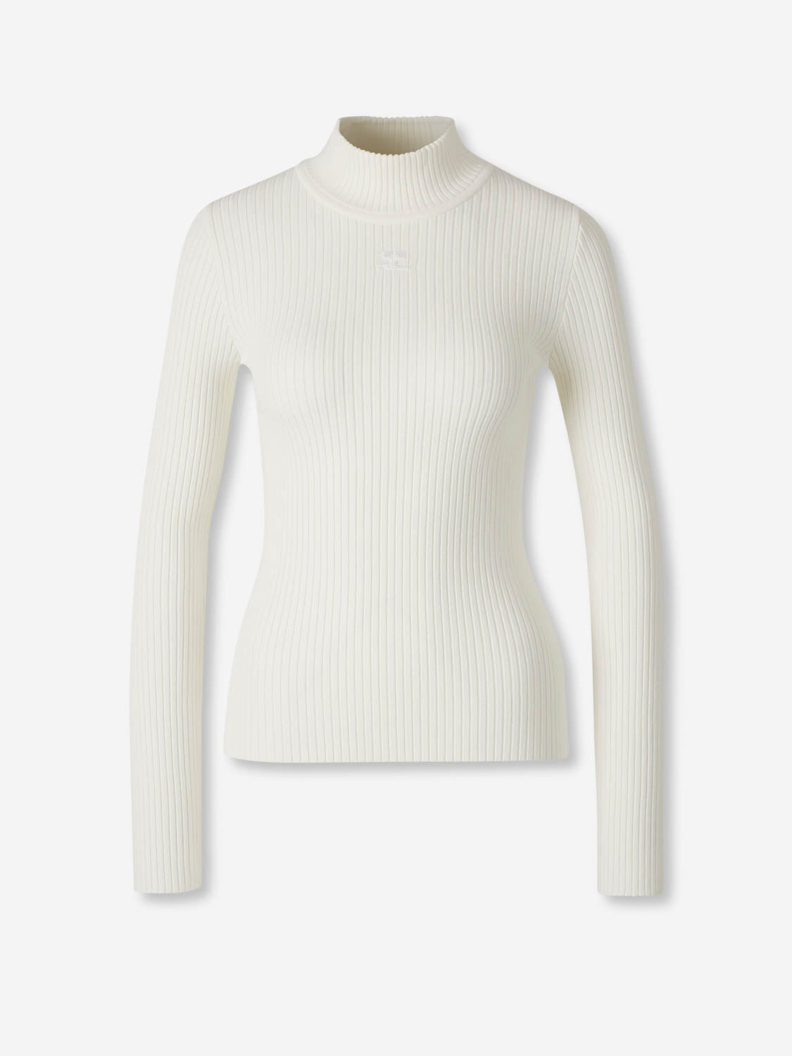 SKU: 711-003346 02 BRAND ID: PERMPU022FI0001 Turtleneck Sweater Turtleneck Sweater By Courreges • White AC logo on the front • Regular fit • Plain • Crafted in ribbed viscose and polyester • Turtleneck Sweater Composition: 70% viscose, 30% polyester Made in: Bulgaria