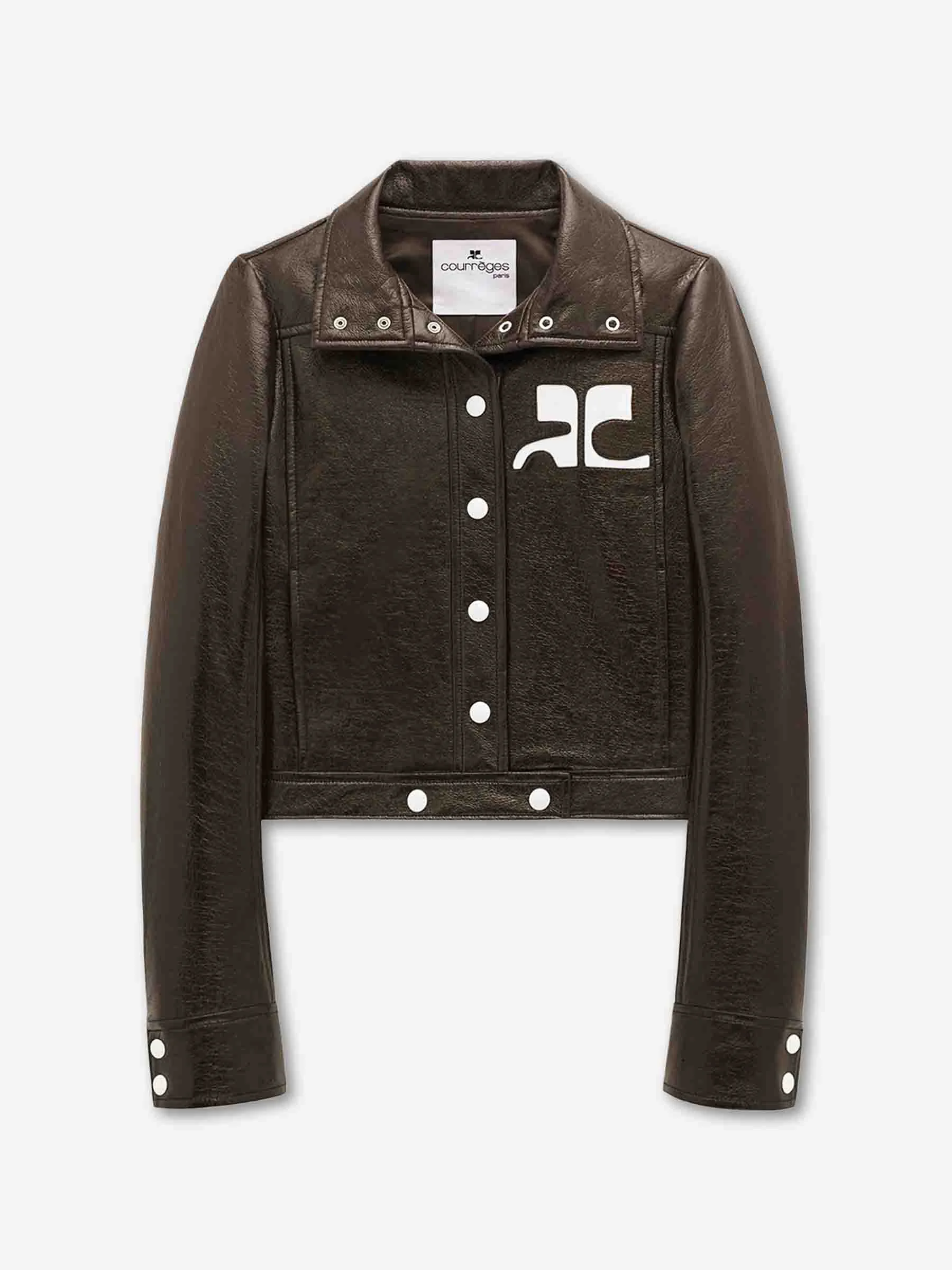 SKU: 772-001545 05 BRAND ID: PERCBL005VY0014 Vinyl Biker Jacket Biker Jackets By Courreges • Two side pockets • Contrast embroidered AC logo on the chest • Crafted from a technical vinyl fabric • Biker Jackets • Front closure with contrast metallic buttons • High collar Composition: 88% cotton, 10% polyurethane, 2% elastane Made in: Portugal