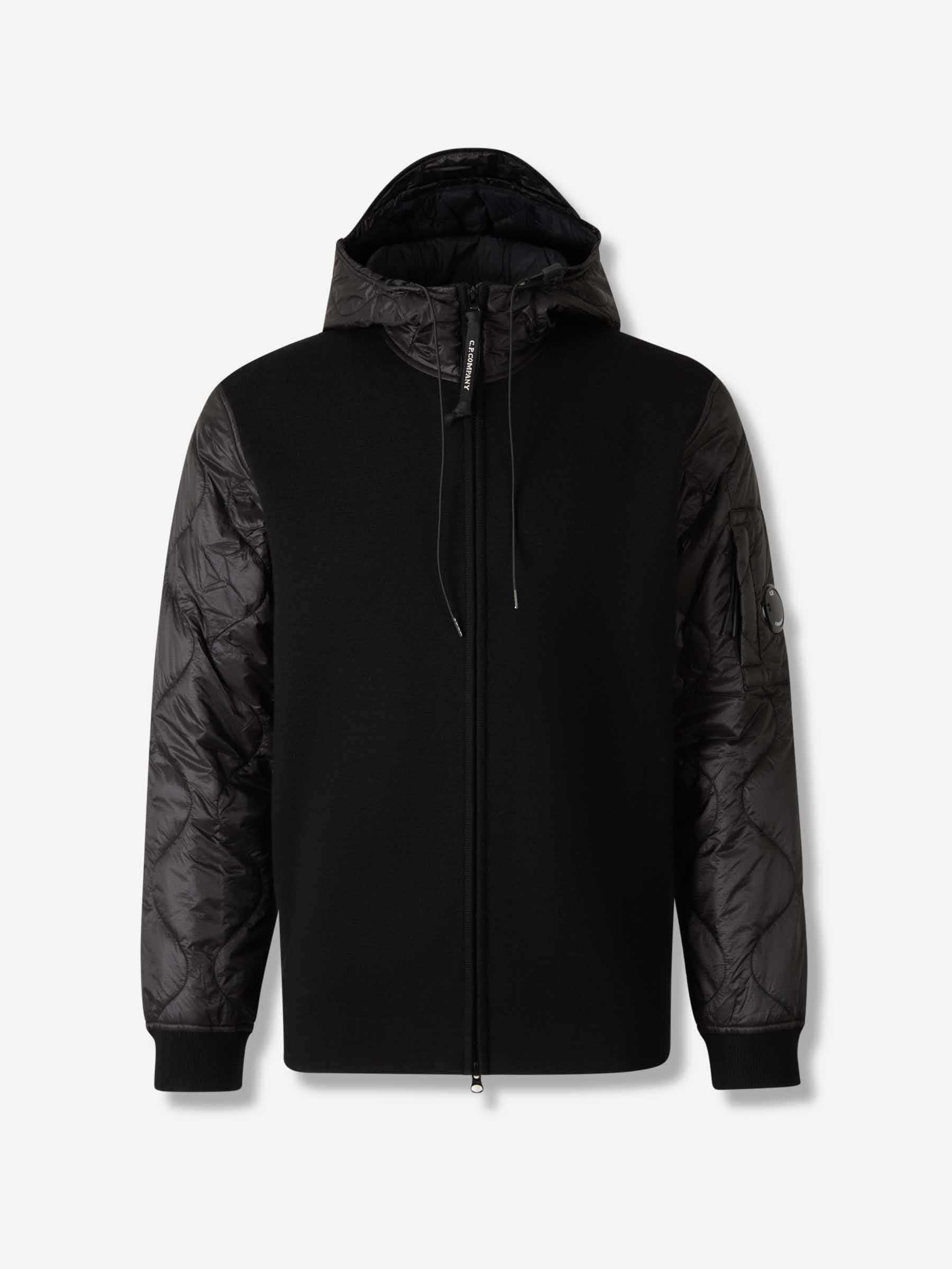 SKU: 543-001061 01 BRAND ID: 19CMKN062A006390M Hooded Zip Cardigan Cardigan By CP Company • Ribbed cuffs and hem for a snug fit • Padded polyamide sleeves and hood • Brand logo discreetly embroidered • Regular fit • Crafted in wool and polyamide knit • Zip closure • High collar with adjustable hood Composition: 100% wool / 100% polyamide Made in: Italy