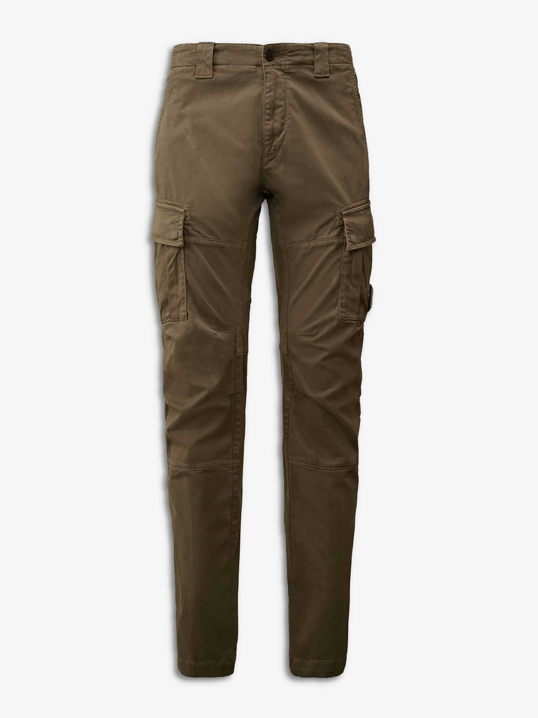 SKU: 521-003445 02 BRAND ID: 19CMPA731A005529G Sateen Ergonomic Trousers Trousers By CP Company • Include back welt pockets with snap closure, side pockets, and cargo pockets with flap • Waist with belt loops • Iconic CP Company Lens logo • Regular fit • Crafted from soft stretch cotton • Straight hem • Front zip and button closure Composition: 100% cotton Made in: Italy