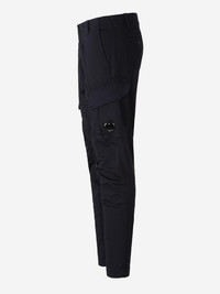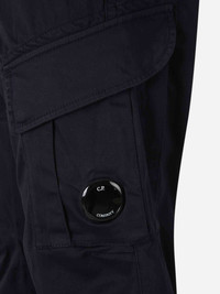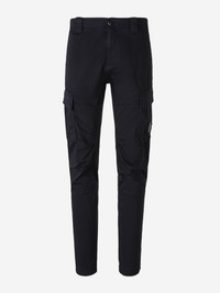 SKU: 521-003309 02 BRAND ID: 18CMPA056A-005694G Pants by C.P. Company • Regular fit • Made of stretch cotton • Detail of the lens • Two side pockets • Zip and button fastening • Belt loops • Two back pockets • Cargo flap pockets with snap closure Logo label applied on the back Leg length: 107 cm 98% Cotton, 2% Elastane