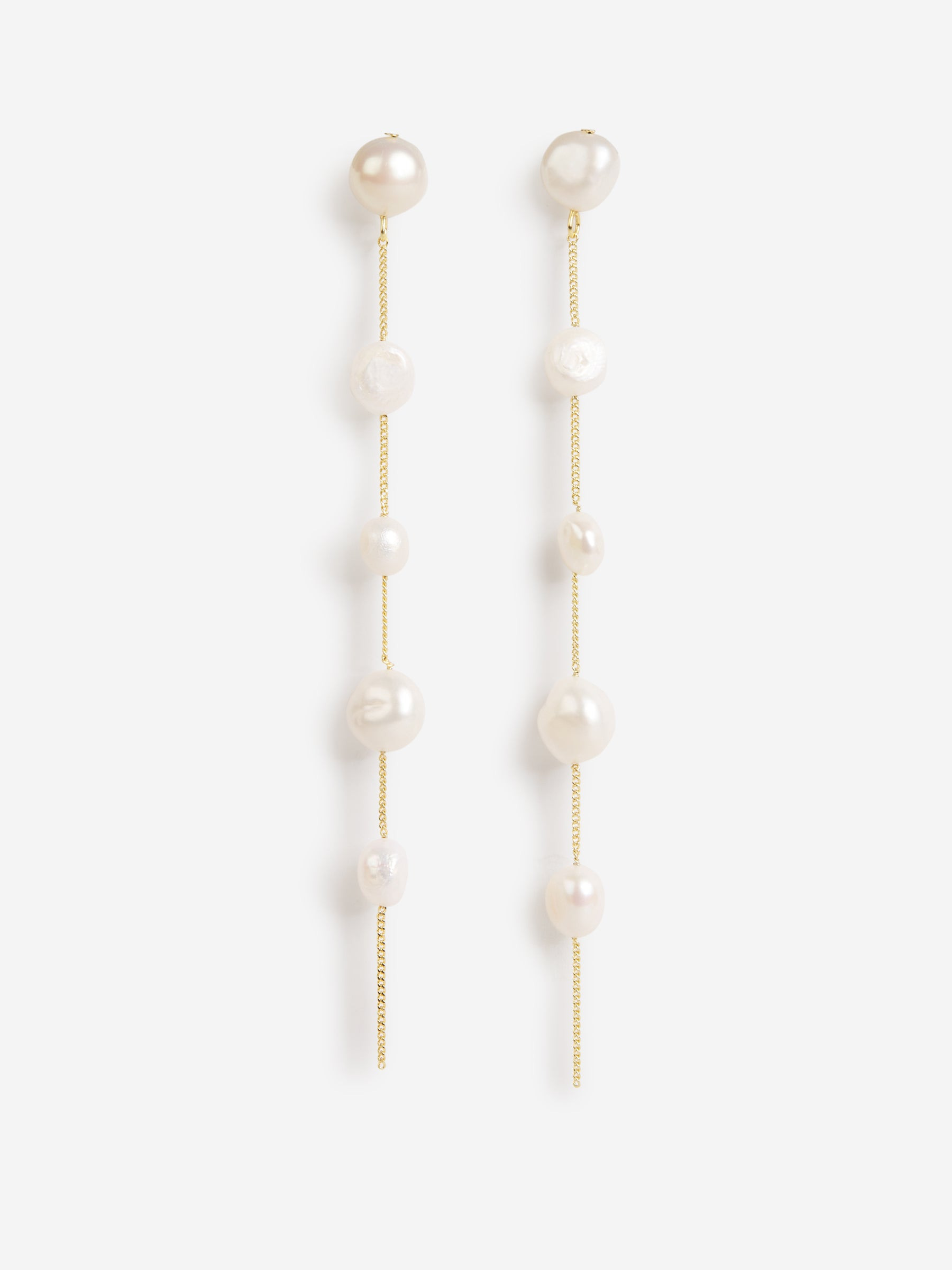 SKU: 850-001960 01 BRAND ID: ER1883PR Atum Pearl Earrings Earrings By Cult Gaia • Freshwater pearl details • Brushed brass and pearls • Pearl earrings • Double gold ball closure 100% Brass China