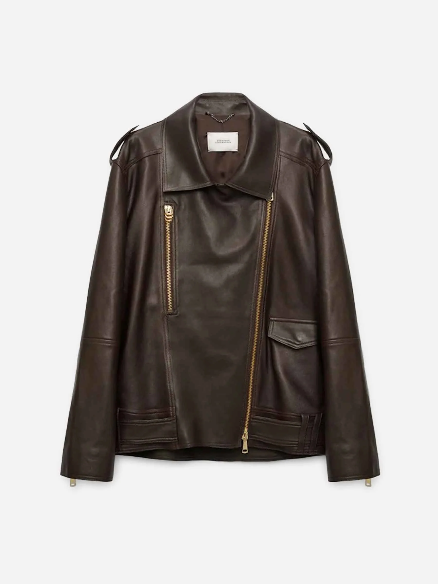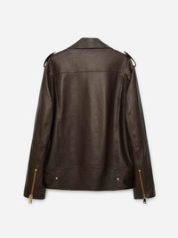 SKU: 741-002312 01 BRAND ID: 253_244112 Biker Leather Jacket Jacket By Dorothee Schumacher • Notch collar • Structured design • Tailored fit • Side pockets with flap and zipper • Cuffs with buttons for a personalized fit • Made of nappa leather • Asymmetrical front closure with zipper Composition: 100% lambskin Italy