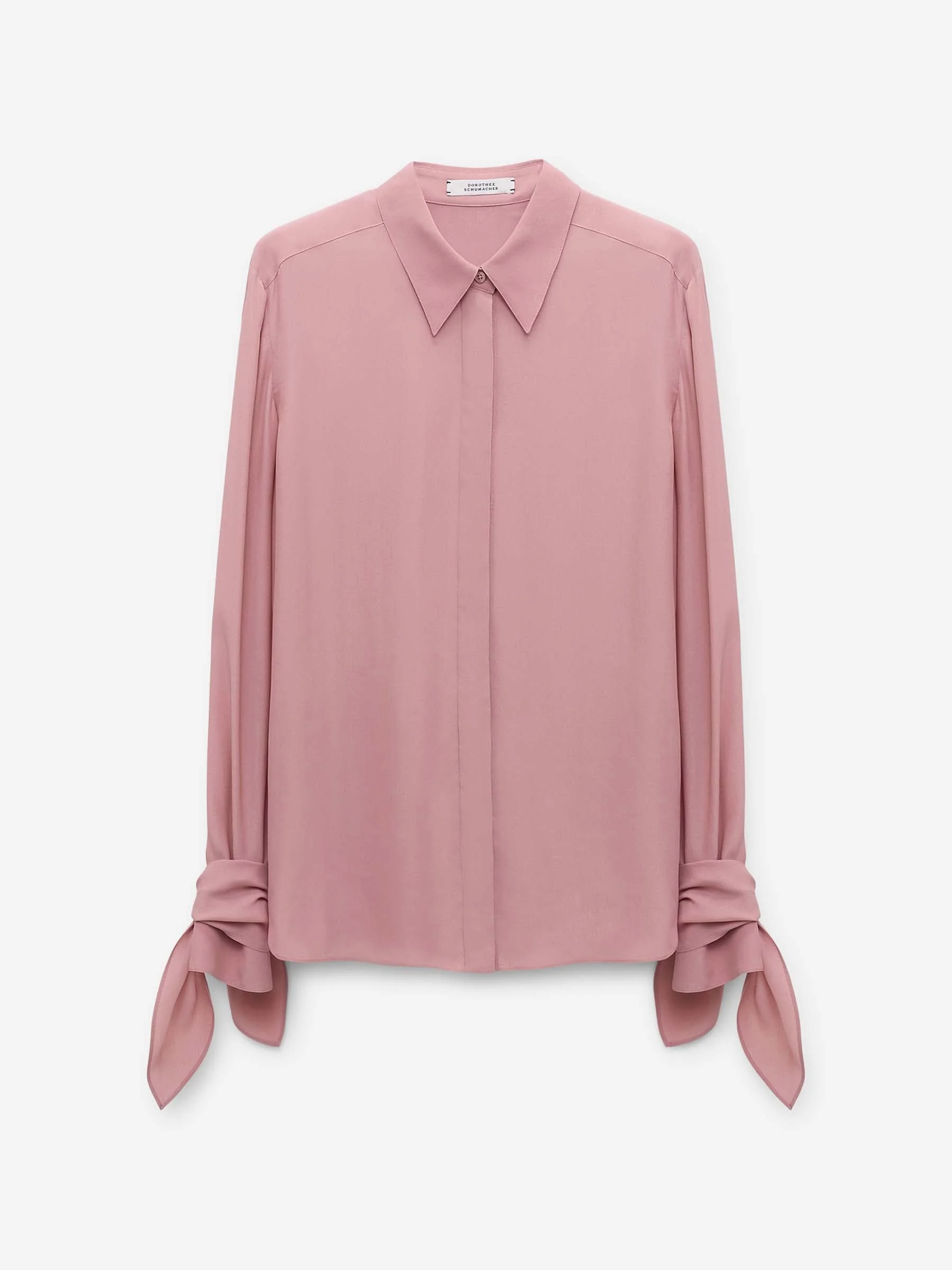SKU: 701-002396 01 BRAND ID: 253_249016 Blouse Soft Vibes Blouse By Dorothee Schumacher • Features a minimalist design that easily adapts to various occasions, ideal for pairing with basic or more formal pieces • Regular fit • Made from silk and viscose crepe from China • Plain blouse • Long sleeves with ties • Shirt collar Composition: 60% viscose, 40% silk Italy
