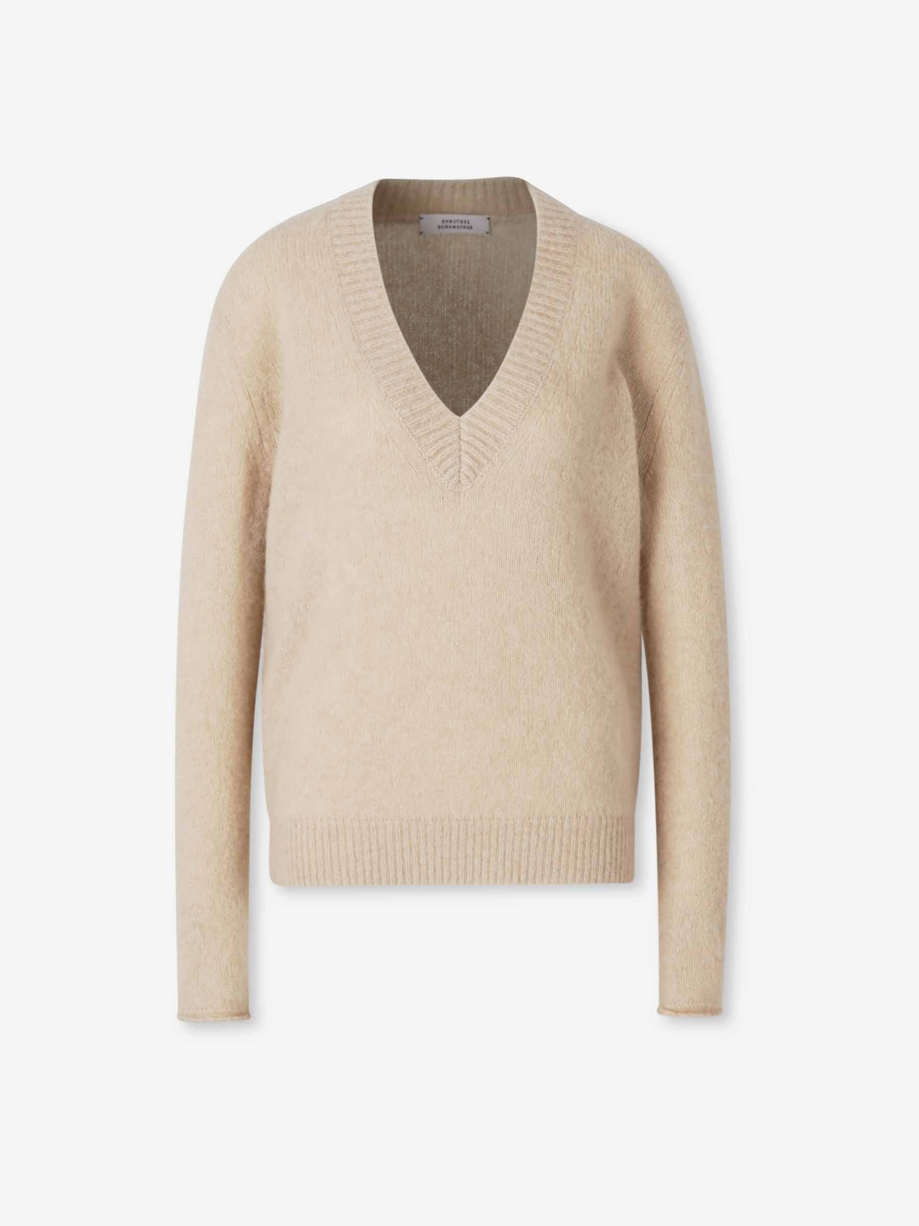 SKU: 711-003341 01 BRAND ID: 252-110103 Sweater by Dorothee Schumacher • Made of cashmere knit • V neck • Ribbed collar, cuffs and hem • Back length: 63 cm Made in China 95% Cashmere, 4% Polyamide, 1% Elastane