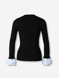 SKU: 711-003439 01 BRAND ID: 255_310602 Sweater By Dorothee Schumacher • Ribbed finishes on the cuffs and hem • Three-quarter sleeves • Regular fit that comfortably adapts to the body • Puffed poplin cuffs • Made of virgin merino wool knit • Round neck • Composition: 100% virgin wool • Made in: China