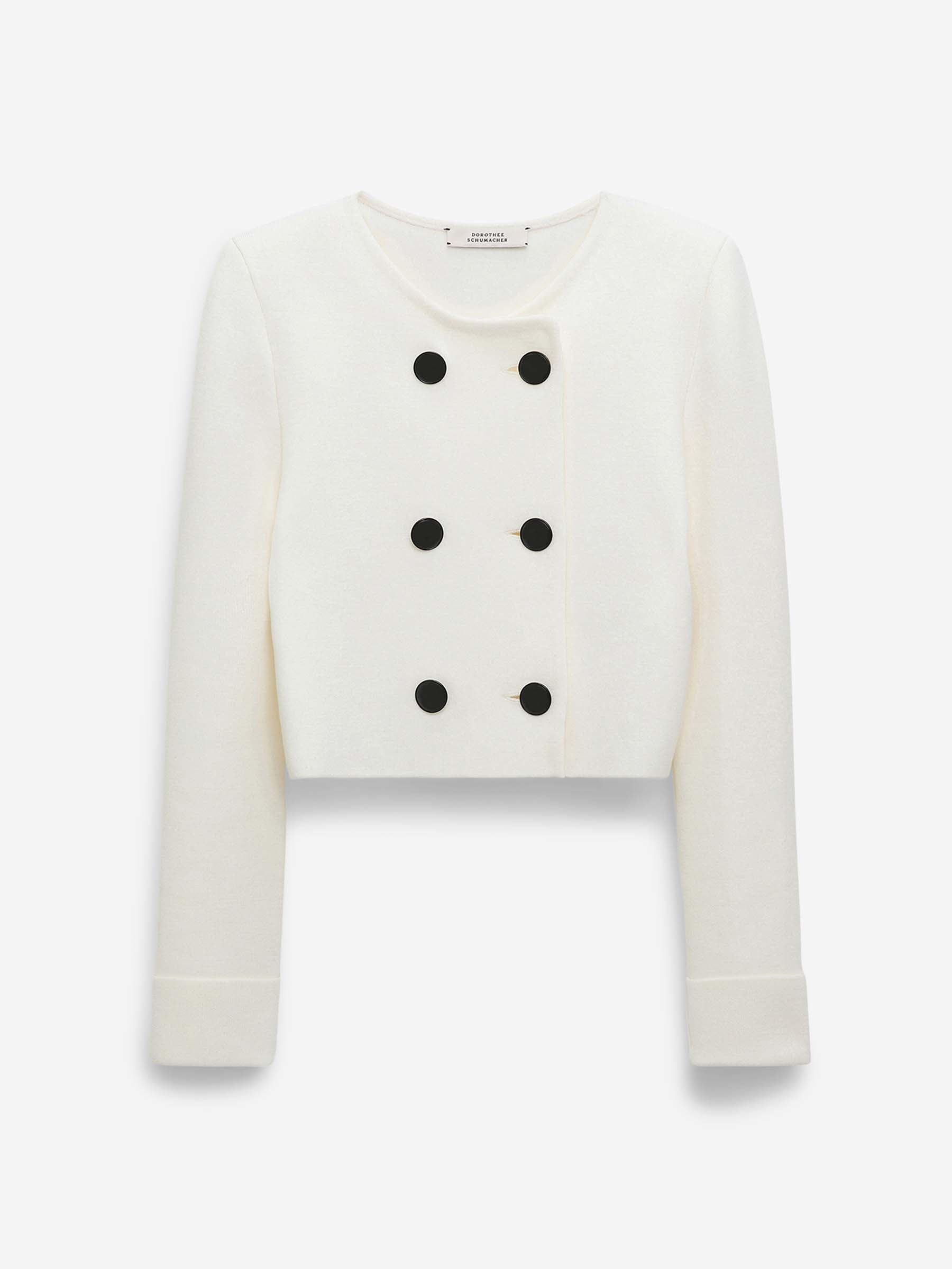 SKU: 741-002257 01 BRAND ID: 253_216002_110 Double-Breasted Jacket Short Jacket By Dorothee Schumacher • With Lapel • Refined Stitching Details • Fully Lined • Double-Breasted Closure • Wool Blend Fabric • Short Jacket Composition: 82% Virgin Wool, 16% Polyamide, 2% Elastane Made in: Italy