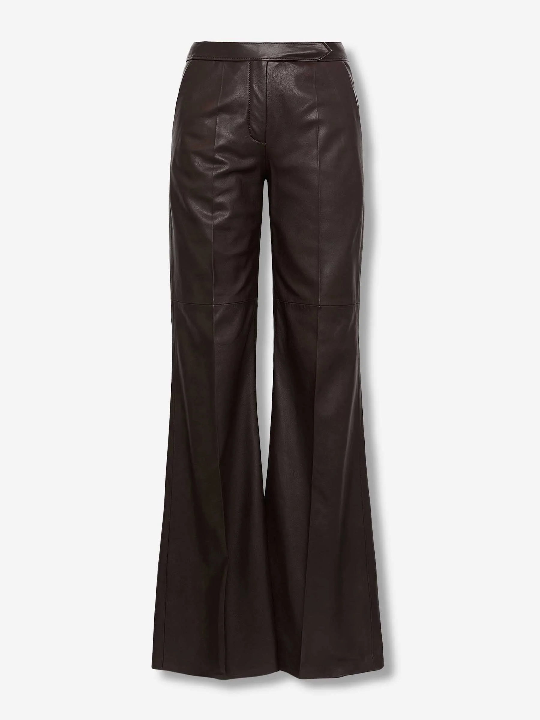 SKU: 761-003853 01 BRAND ID: 253_244103_799 Flared Leather Pants Pants By Dorothee Schumacher • Side and back pockets • Mid-rise with belt loops • Relaxed fit • Made from soft lambskin • Flared hem Composition: 100% lambskin Italy