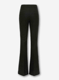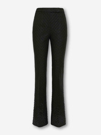 SKU: 761-004055 01 BRAND ID: 255_348043 Flared Pants By Dorothee Schumacher • Diagonal side pockets and piped back pockets • High waist that enhances the figure • Slim fit • Made of Milano knit with floral embroidery • Flared Pants • Sequin and bead embellishment • Zipper closure with button at the front • Composition: 67 % viscose, 28 % polyamide, 5 % elastane • Made in: China