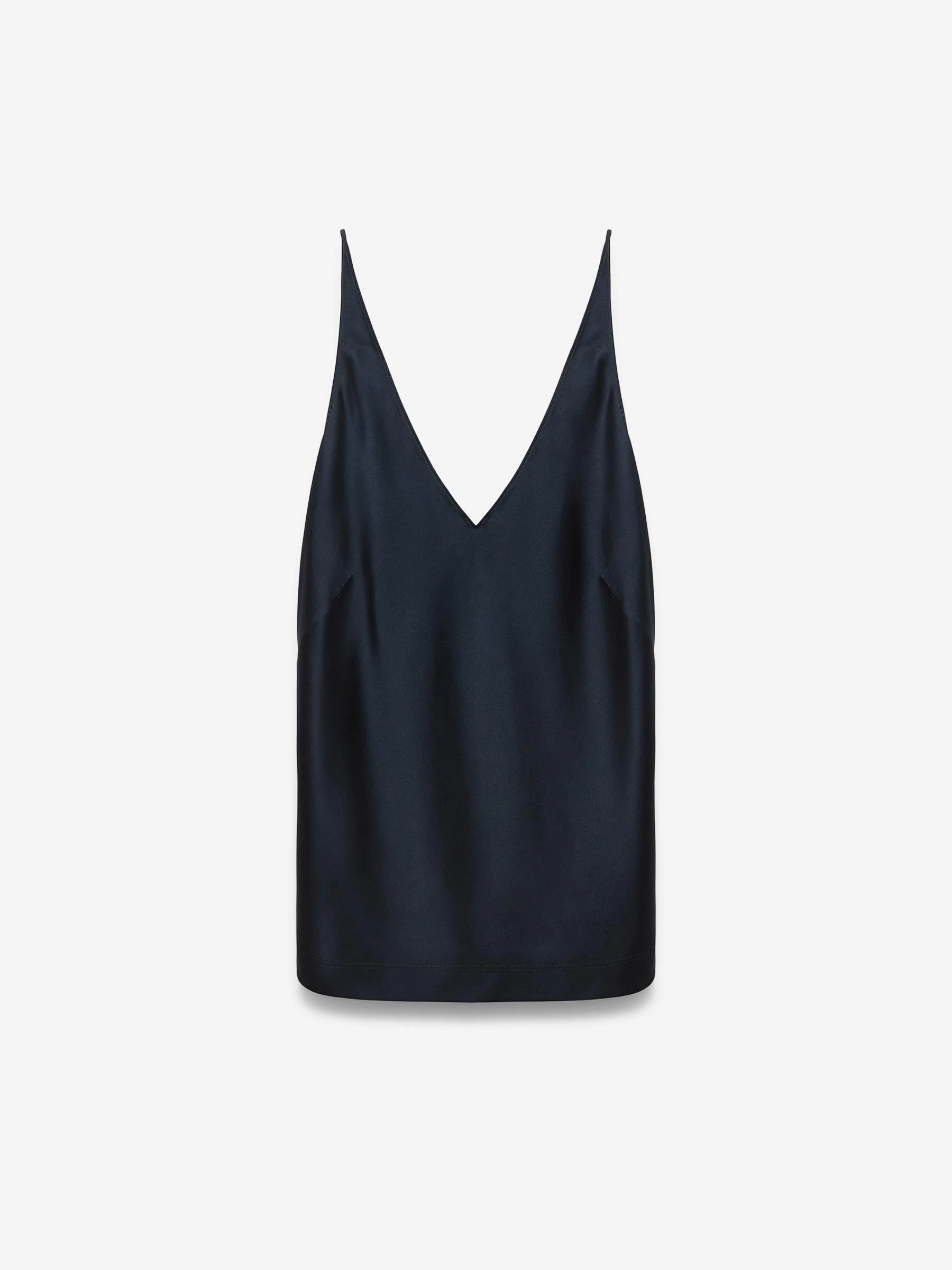 SKU: 703-002535 01 BRAND ID: 888_049512 Top By Dorothee Schumacher • Bias cut • Regular fit • Made of elastic silk satin • Adjustable thin straps • V-neck • Composition: 95% silk, 5% elastane • Made in: China