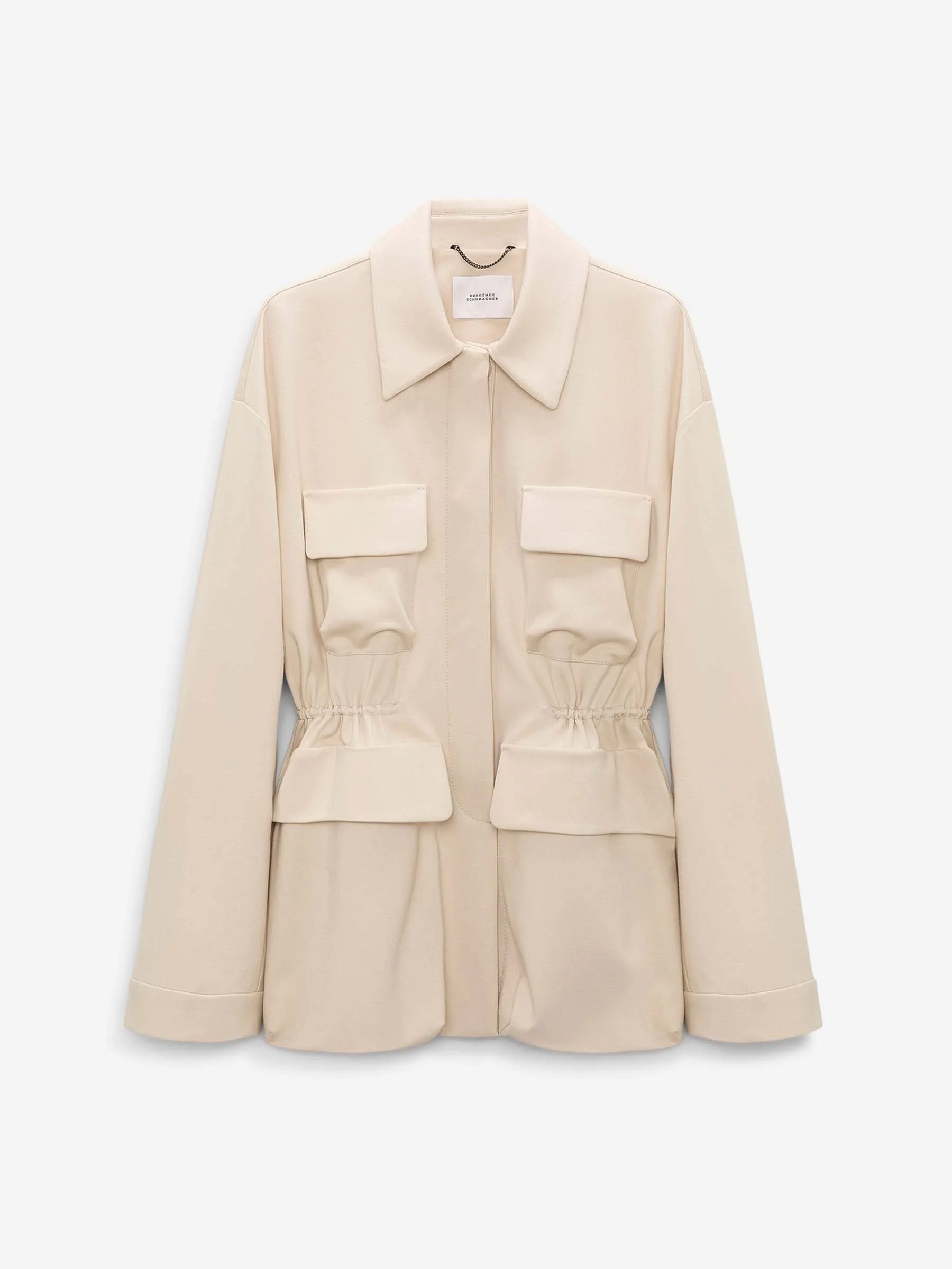 SKU: 772-001588 01 BRAND ID: 261_448022 Jacket By Dorothee Schumacher • Casual jacket • Made from a blend of viscose and elastic polyamide • Shirt collar • Front button closure • Front patch pockets • Adjustable waist with drawstring • Composition: 67% viscose, 28% polyamide, 5% elastane • Made in: Italy