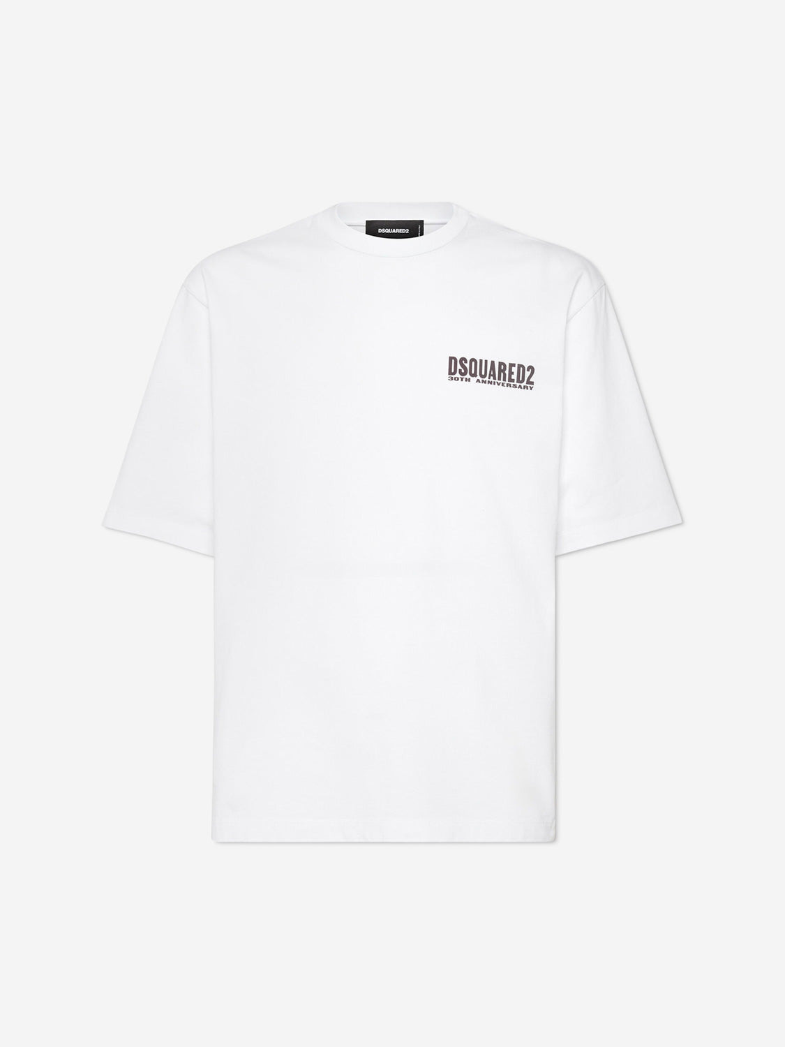 SKU: 553-004477 01 BRAND ID: S71GD1609 Round Neck T-shirt T-shirt By Dsquared2 • Ribbed finish at the neckline • 30th anniversary brand logo on the chest, large anniversary graphic printed on the back. • Regular • Brand logo on the chest, large graphic on the back. • Made from high-quality cotton • T-shirt • No closure • Round neck Composition: 100% cotton Italy