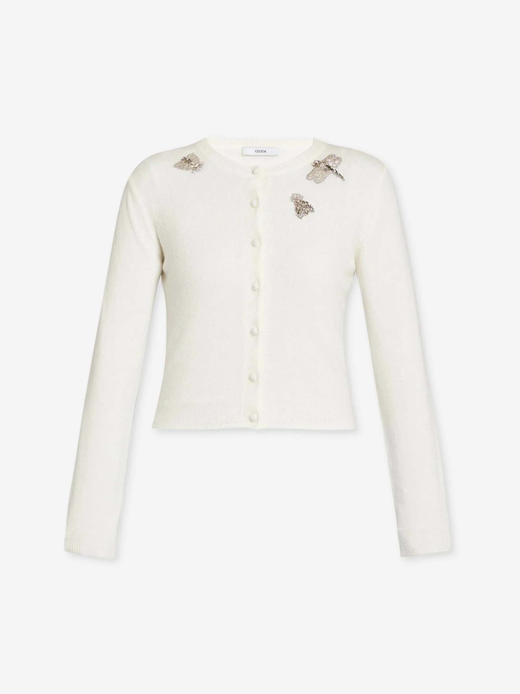 SKU: 713-000419 01 BRAND ID: PS26_KT42_30209008 Erdem cardigan • Ribbed cuffs and hem • Regular fit that offers comfort and style • Adorned with crystal embroidery • Made from a blend of polyamide, wool, lyocell and alpaca • Button closure • Round neck • Composition: 41% polyamide, 20% wool, 30% lyocell, 15% alpaca • Made in: Italy