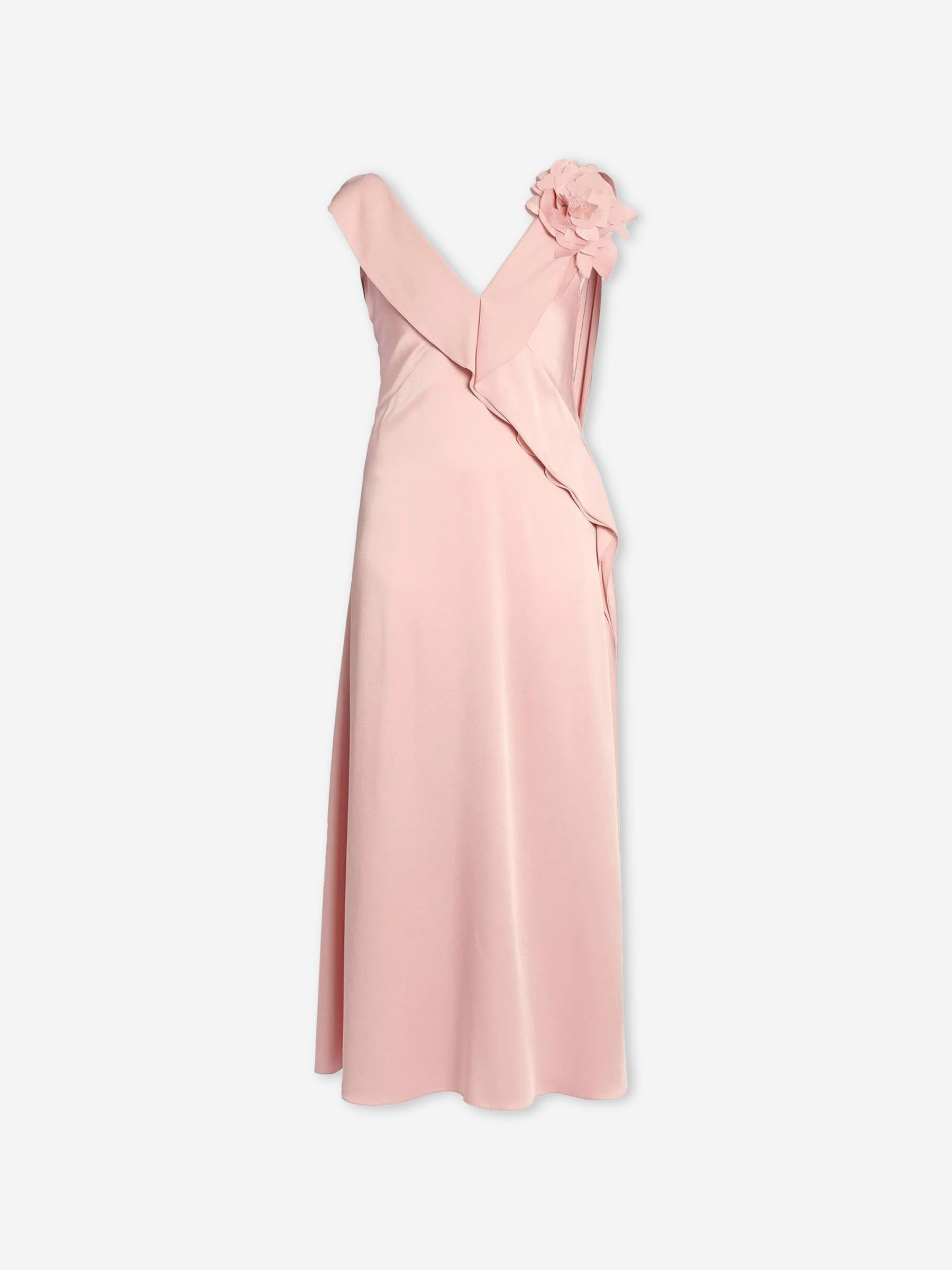 SKU: 721-000651 01 BRAND ID: PF25_D112_50255005 Midi Satin Dress Dress By Erdem • Sleeveless • V-neck • Cascade draping and hand-embroidered floral details • Regular fit • Made from high-quality acetate satin • Midi dress • Hidden zip closure at the back 71 % acetate, 29 % viscose Italy