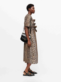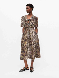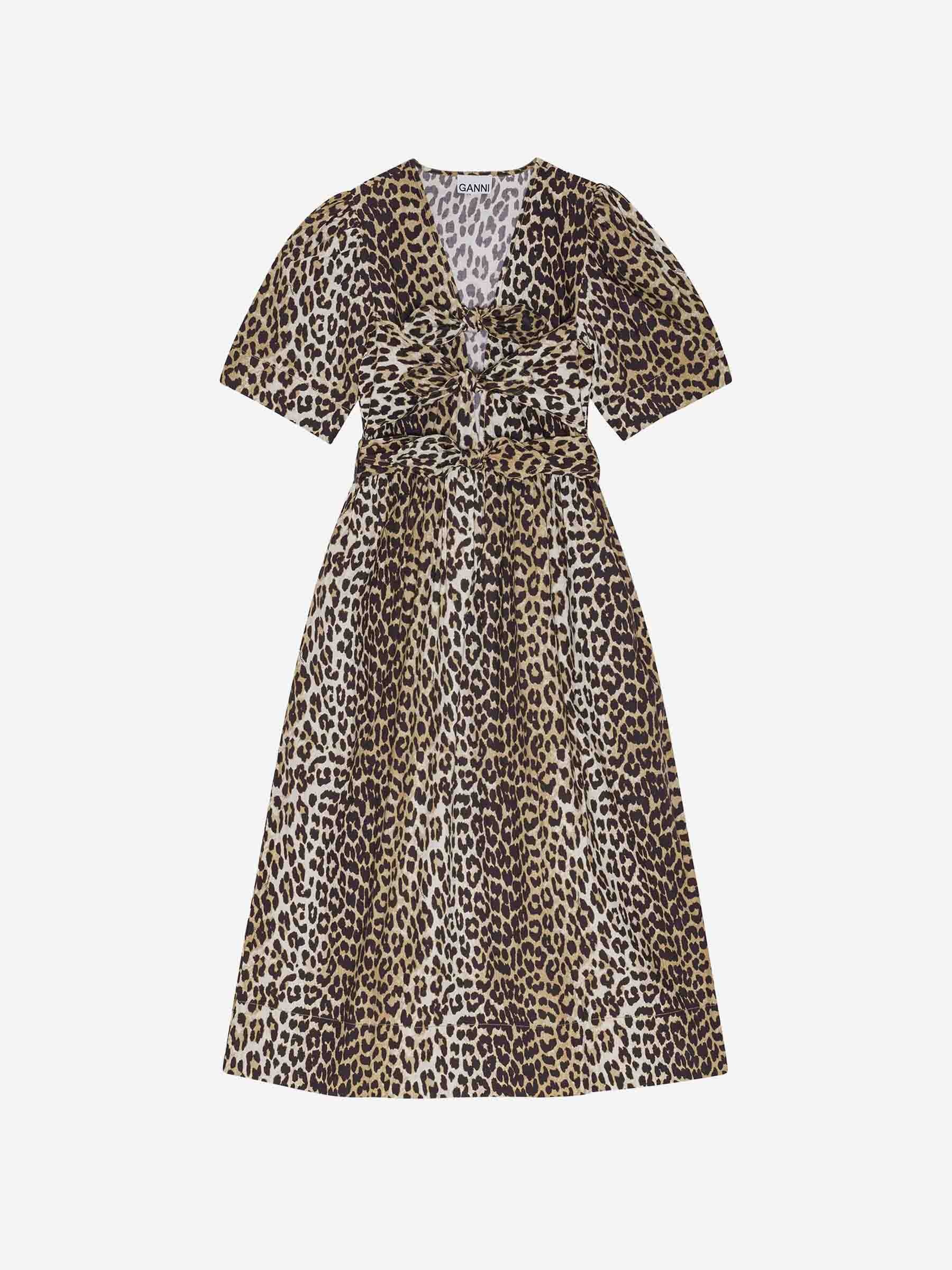 LEOPARD PRINTED COTTON TIE STRAP MIDI DRESS