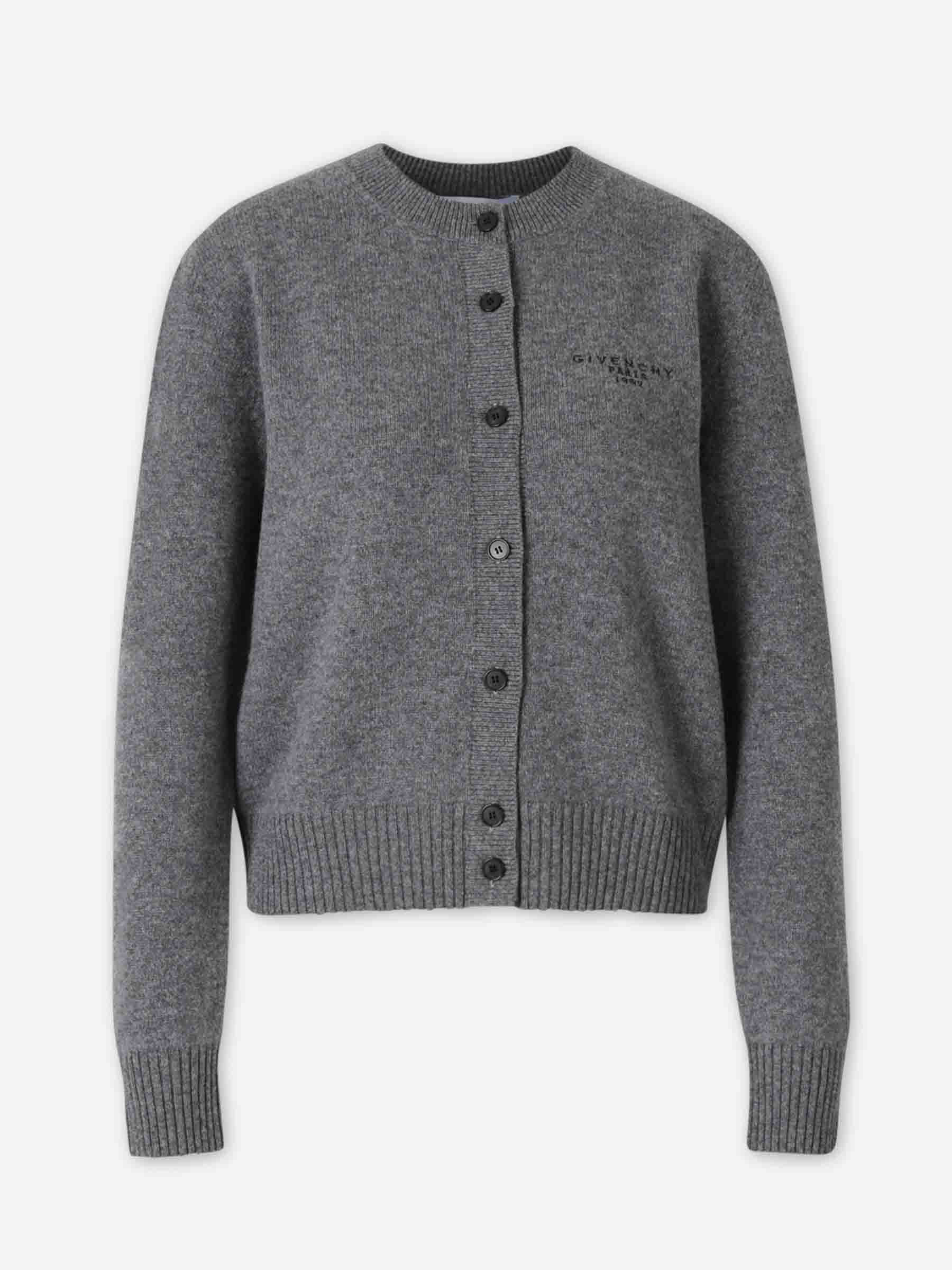 SKU: 713-000401 01 BRAND ID: BWK00P4ZSN Cashmere Wool Cardigan Cardigan By Givenchy • Ribbed finishes on the cuffs and hem • Regular fit • GIVENCHY Paris 1952 embroidered on the chest • Made from a soft wool and cashmere knit • Long sleeve • Front button closure • Round neck Composition: 70% wool, 30% cashmere Made in: Italy