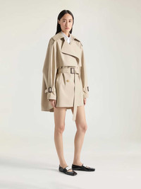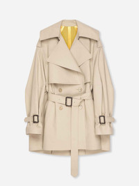 SKU: 773-000269 01 BRAND ID: BW00TC164R Short Cocoon Coat Type of article By Givenchy • Side pockets and contrast lining • Adjustable and removable belt with leather buckle • Made of cotton gabardine • Adjustment tongue at cuffs • Front closure with buttons • Notched lapel and cape back in cotton Composition: 100% cotton Portugal