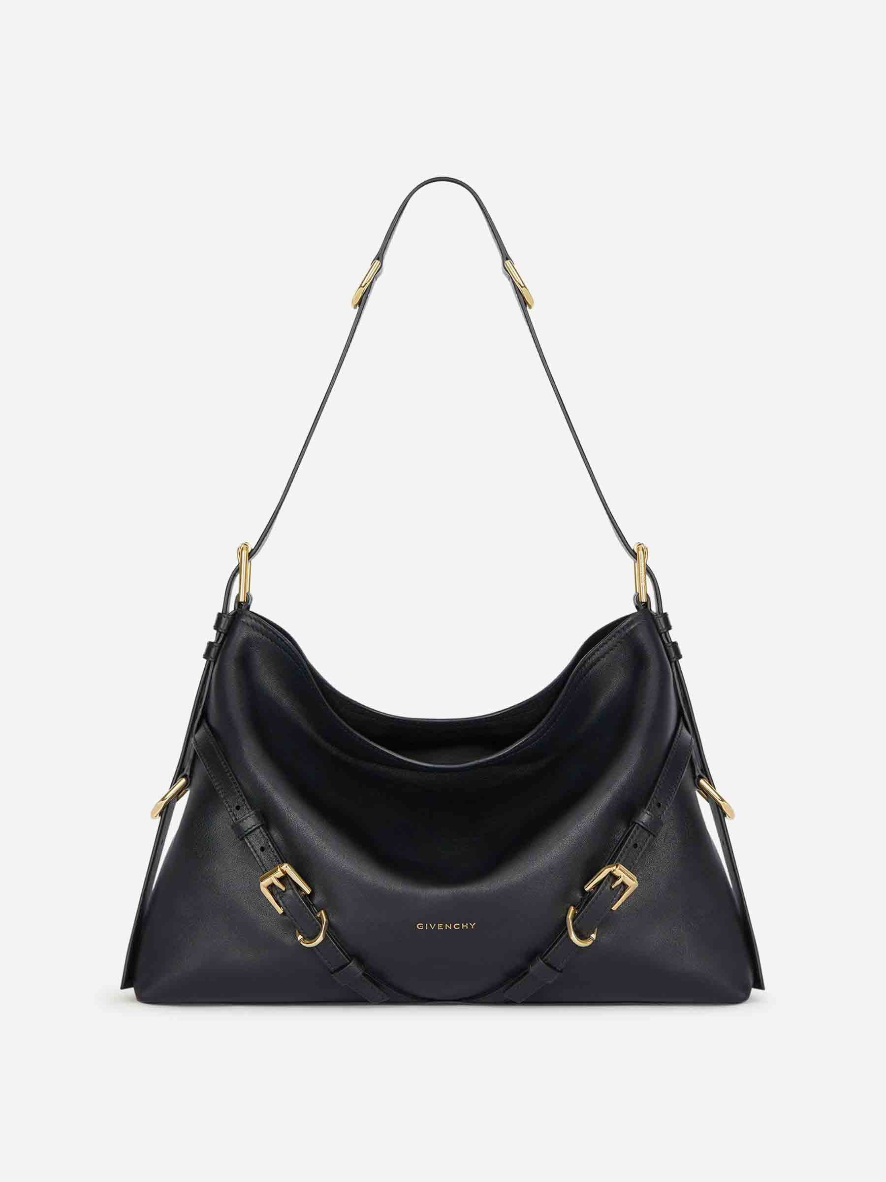 SKU: 810-008334 01 BRAND ID: BB5131B2AE Voyou Medium Bag Givenchy Bag • One main compartment and one zip pocket inside • Suede lining • 38 x 28 x 10 cm • Metallic details with a gold finish • Delicate metallic buckles engraved GIVENCHY • Size: Medium • Item By Givenchy • Adjustable shoulder strap allowing for hand, shoulder or crossbody wear • Loose V-shaped silhouette with generous volume • Crafted from high-quality smooth and shiny calfskin 100% calfskin
