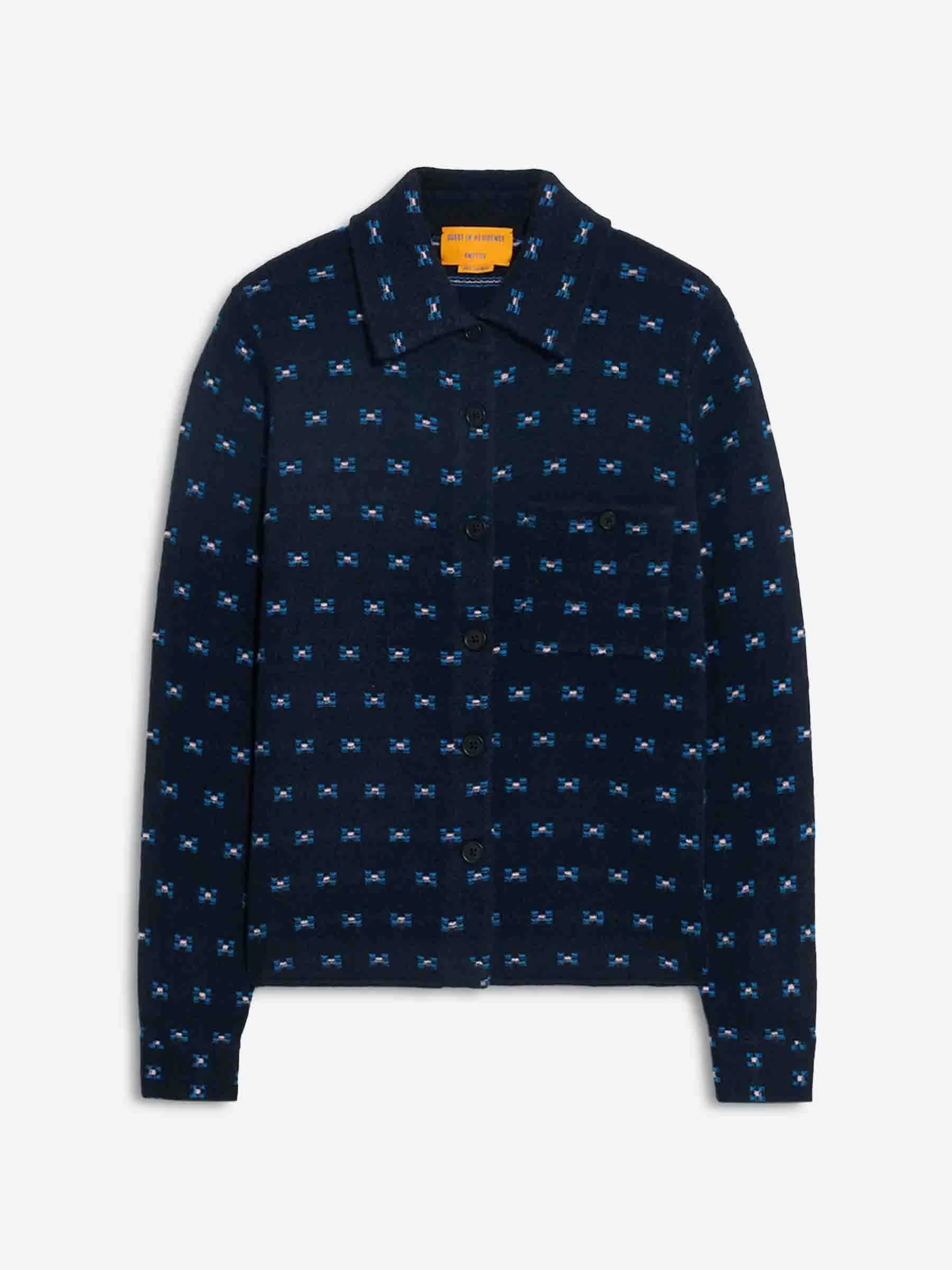 SKU: 701-002415 01 BRAND ID: W38310AL Blouse By Guest in Residence • Ribbed finishes at cuffs and hem • Regular fit • Cuffs with button • Made in cashmere knit • Jacquard of small geometric patterns • Front closure with buttons • Shirt collar • Composition: 100% cashmere • Made in: China