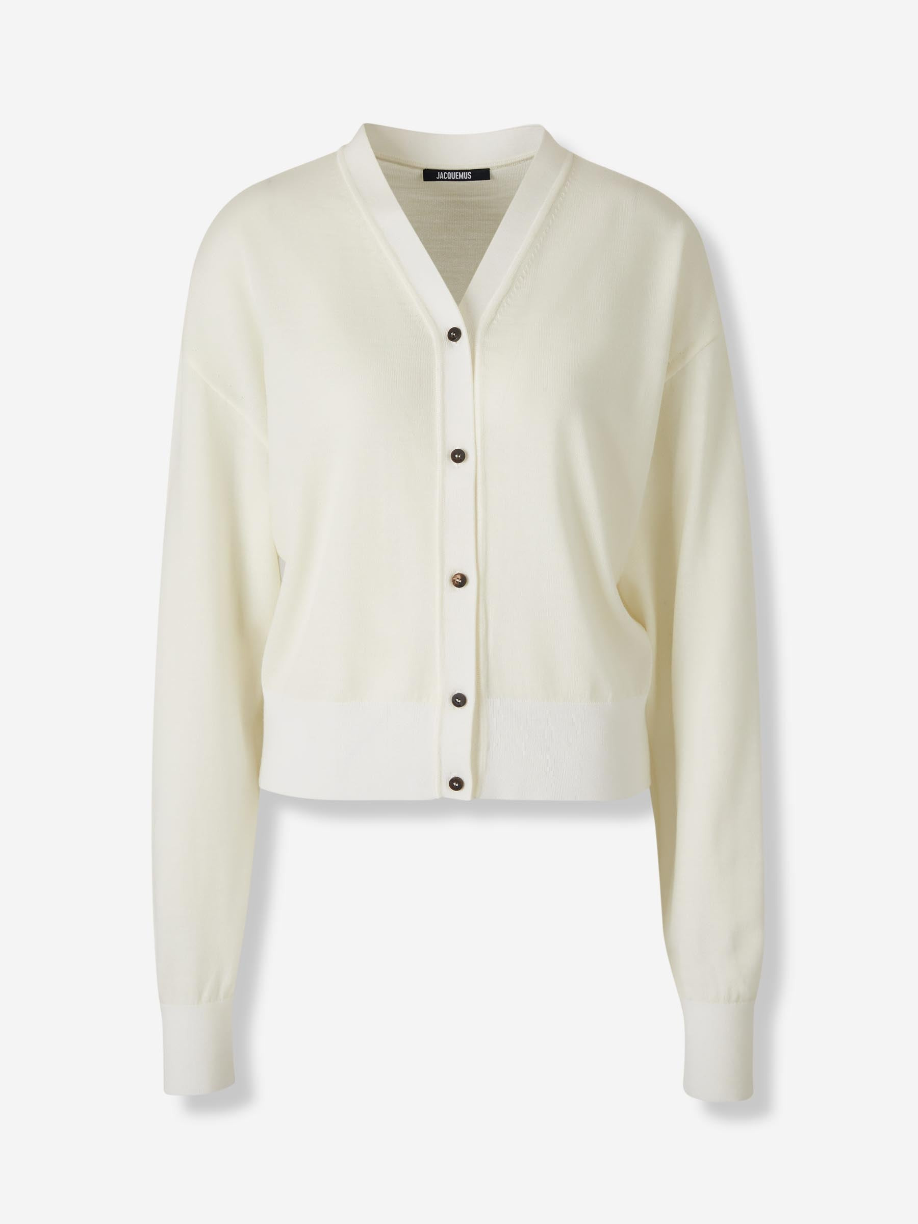 SKU: 713-000403 01 BRAND ID: 25HCDW00816AK00299 Cardigan Brode Cardigan By Jacquemus • Ribbed finishes on cuffs and hem • Regular fit • Tone-on-tone embroidery on the back • Made of virgin wool knit • Front button closure • V-neck Composition: 96% virgin wool, 4% polyester Portugal