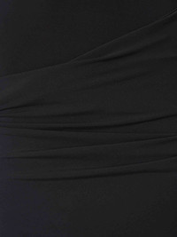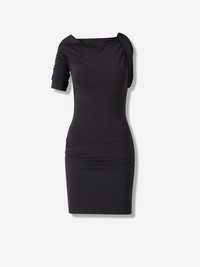 SKU: 731-006090 01 BRAND ID: 24EDRW00143AJ00136 Draped Mini Dress Mini dress By Jacquemus • Front side pleated detail • Elbow-length sleeve gathered on the right side • Asymmetric draped boat neckline • Knotted neckline detail on the left shoulder • Crafted in fluid viscose jersey • Mini dress Composition: 71% viscose - 21% polyester - 8% elastane Made in: Portugal