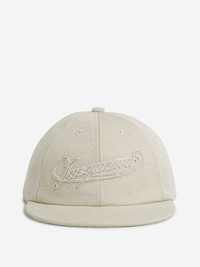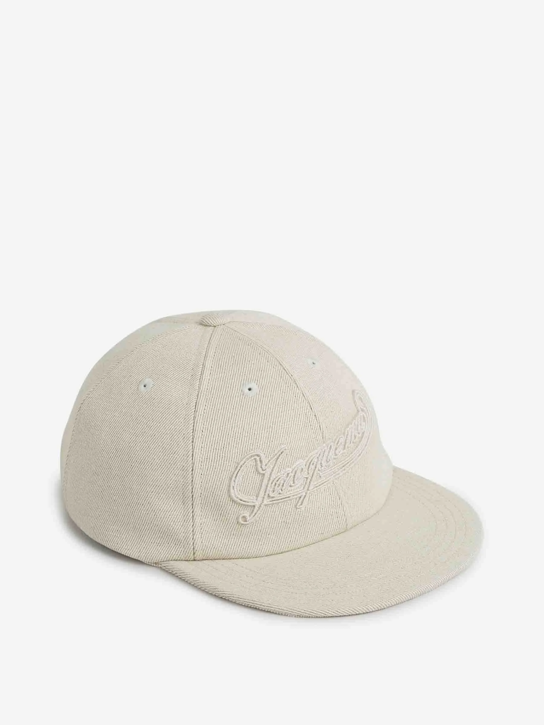 SKU: 695-001737 01 BRAND ID: 255AC718-5113 Gorra de Jacquemus • Flat visor • Adjustable with buckle Made in Bulgaria 55% Lino, 45% Algodon