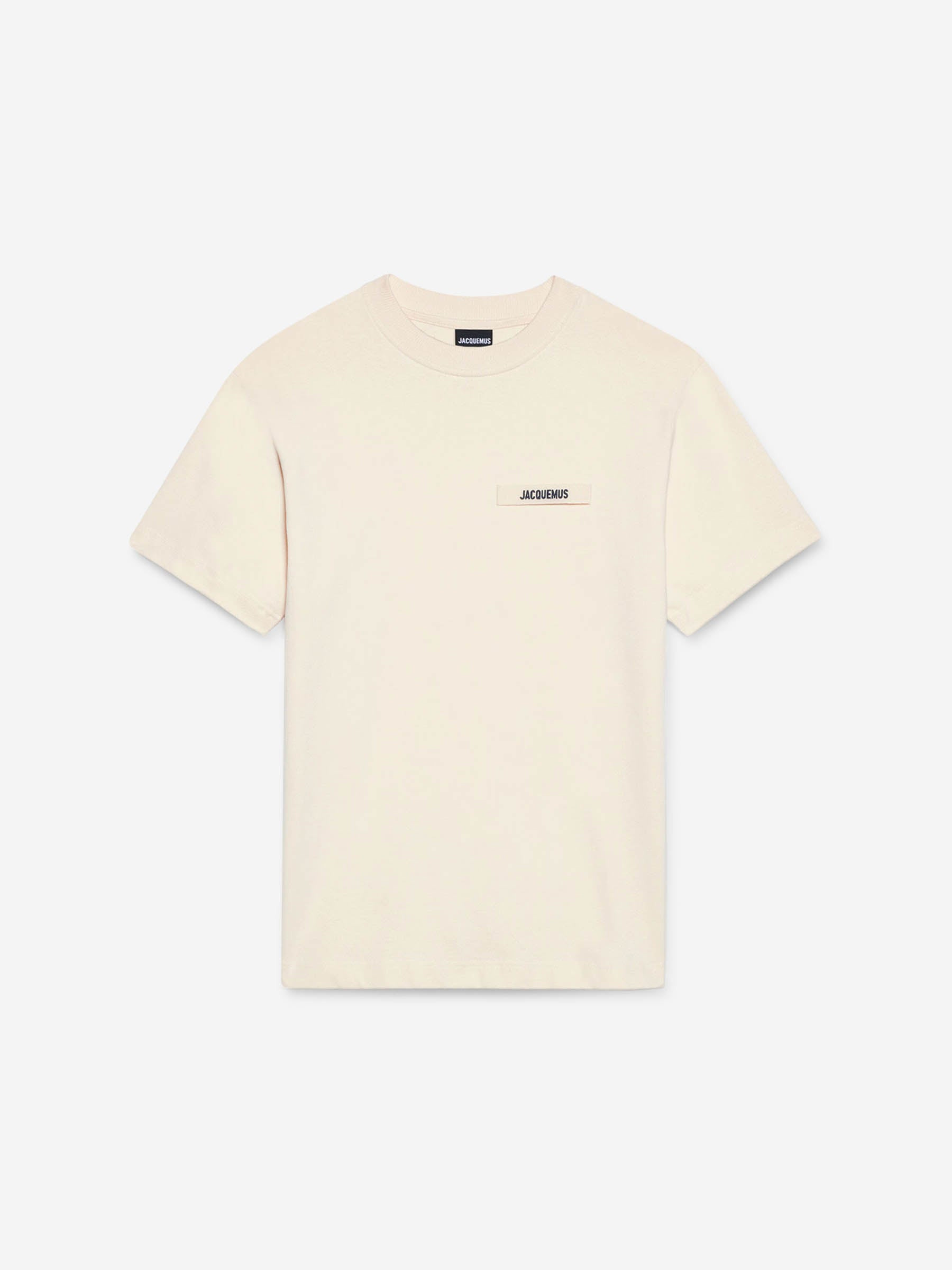 SKU: 553-004333 01 BRAND ID: 25HTSM00133AJ00226 Gros Grain T-shirt T-shirt By Jacquemus • Ottoman logo embroidered on the chest • Relaxed fit • Made from organic cotton knit • Short sleeve t-shirt • Ribbed round neck Composition: 100% Cotton Made in: Portugal