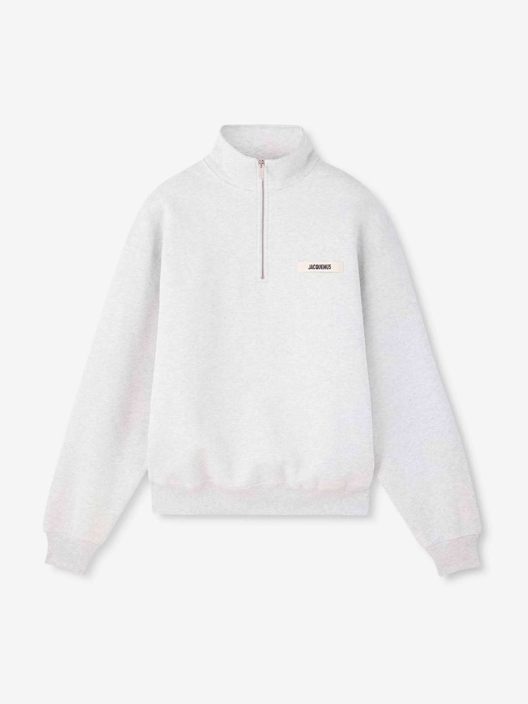 SKU: 545-002061 01 BRAND ID: SSM00313AJ00174 sweatshirt By Jacquemus • Loose fit • Made of cotton terry cloth • High neck • Half zip at the neck • Long sleeve • Ribbed cuffs and hem • Ottoman logo on the chest • Composition: 100% cotton • Made in: Portugal