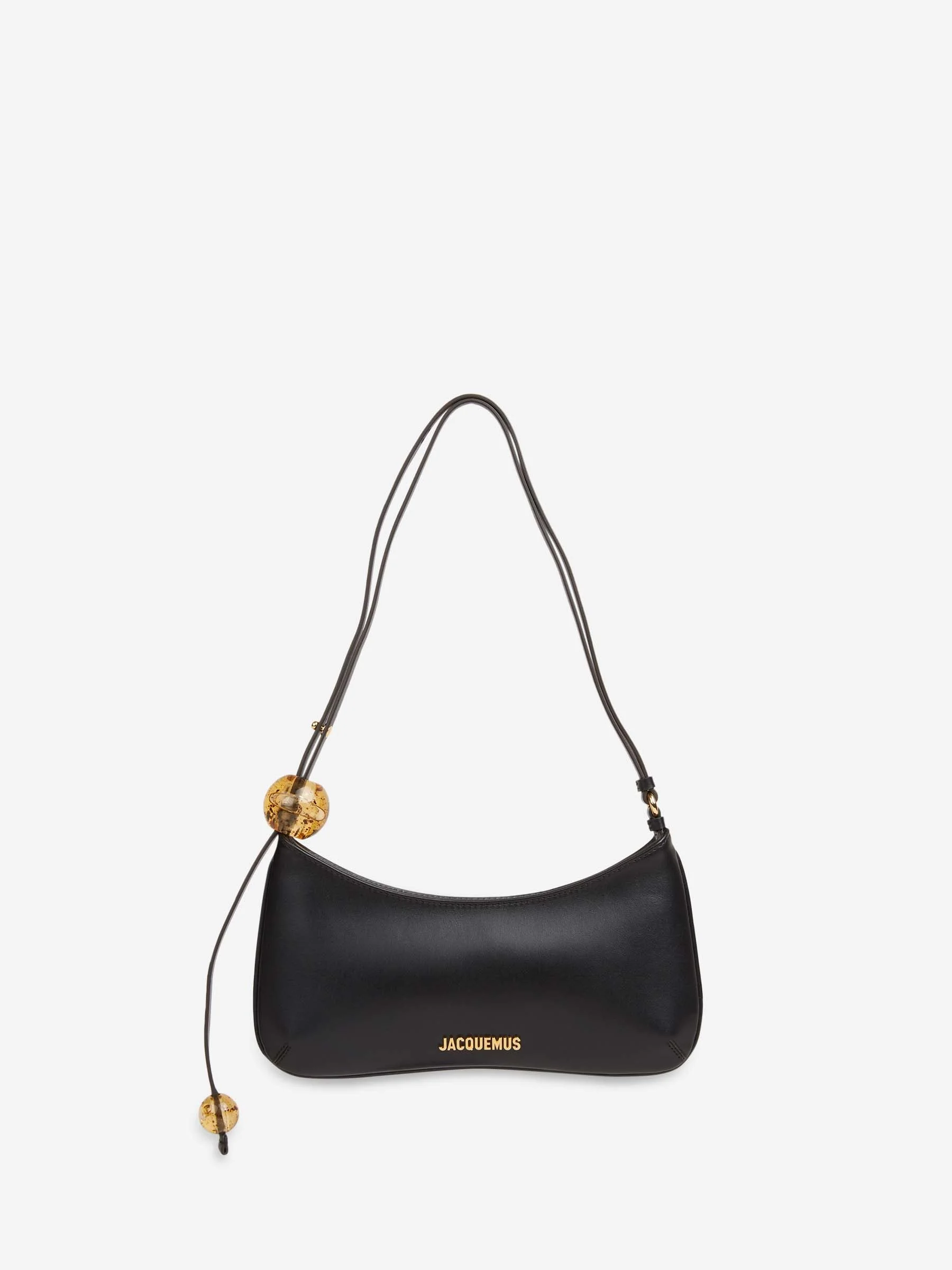 SKU: 814-000097 01 BRAND ID: BAW00057AC01C01 Bag By Jacquemus • Shoulder bag • Made of smooth leather • Leather strap with adjustable buckle and large beads • 27 x 10.5 cm • edged profile • Overlay interior pocket • Metal parts and gold metal logo • Zipper closure • edged profile • Made in: Italy