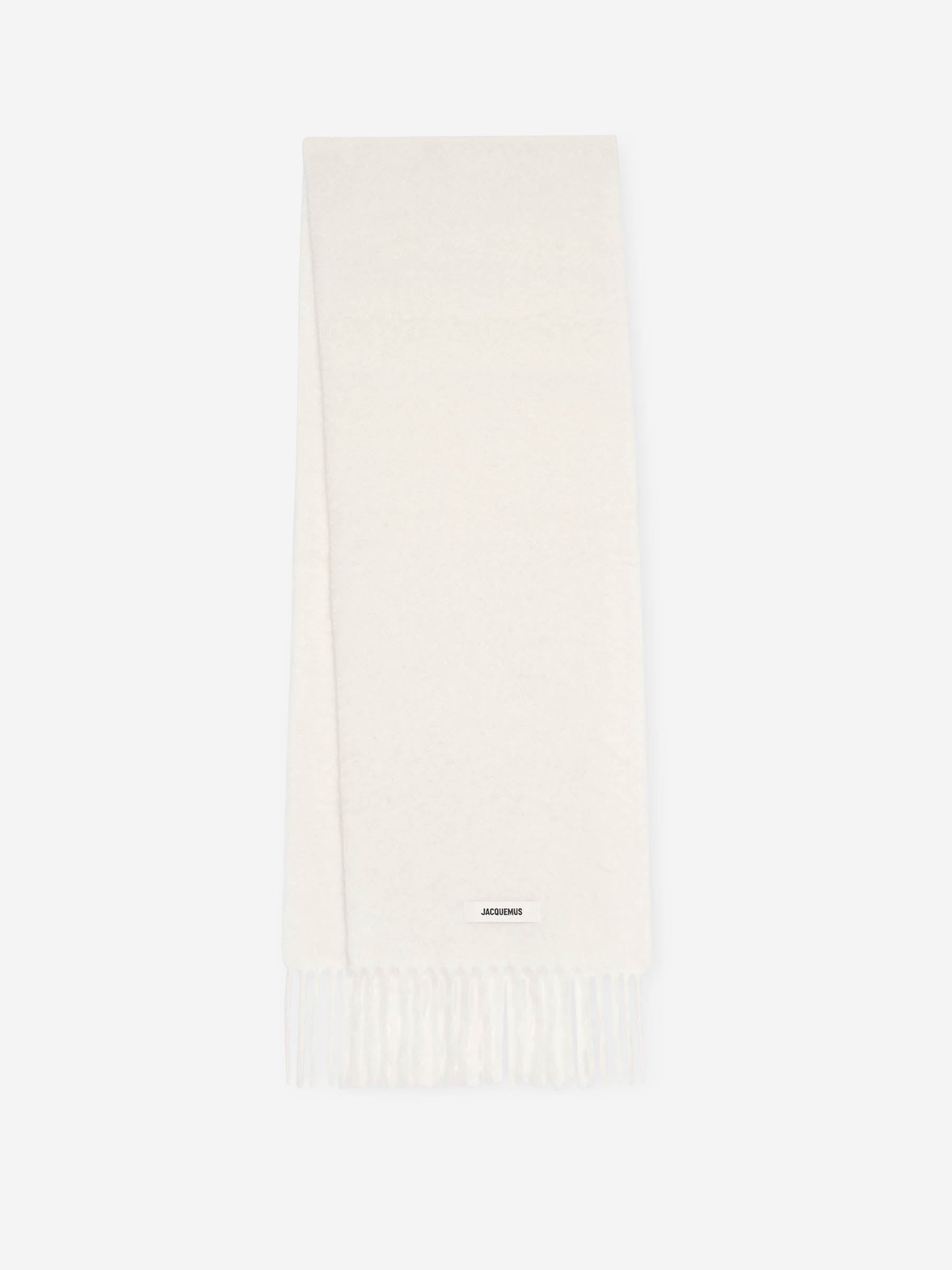 SKU: 630-001472 05 BRAND ID: 24HACU00572BOT4032 L'Echarpe Carro Scarf Scarf By Jacquemus • Fringed ends • Embroidered logo on sewn tape • Crafted from high-quality wool Composition: 100% wool Made in: Italy