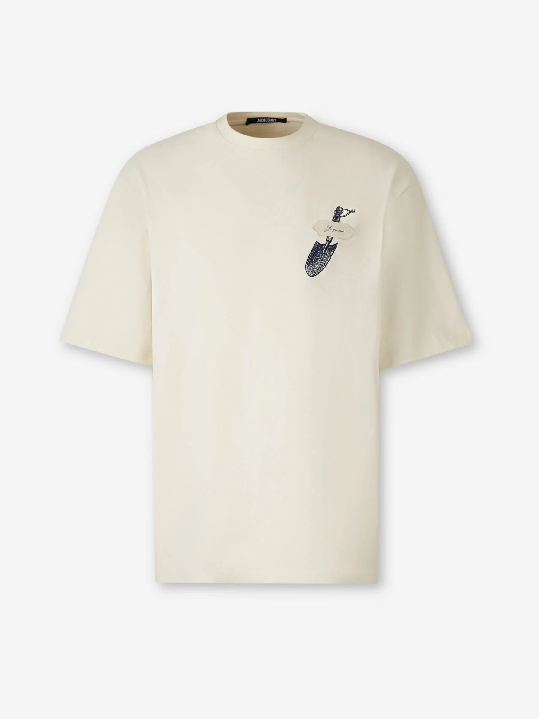 SKU: 553-004679 00 BRAND ID: TSM00623AJ00226 T-shirt By Jacquemus • Relaxed cut • Made from cotton fabric • Round neck • Ribbed collar • Embroidered shovel and sewn-on chest label • Short sleeve • Composition: 100% cotton • Made in: Portugal