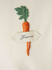 SKU: 782-001857 01 BRAND ID: TSM00637AJ00226 T-Shirt By Jacquemus • JACQUEMUS logo printed on the patch • Sewn carrot patch on the chest • Made from cotton fabric • Round neck • Short sleeve • Composition: 100% cotton • Made in: Portugal