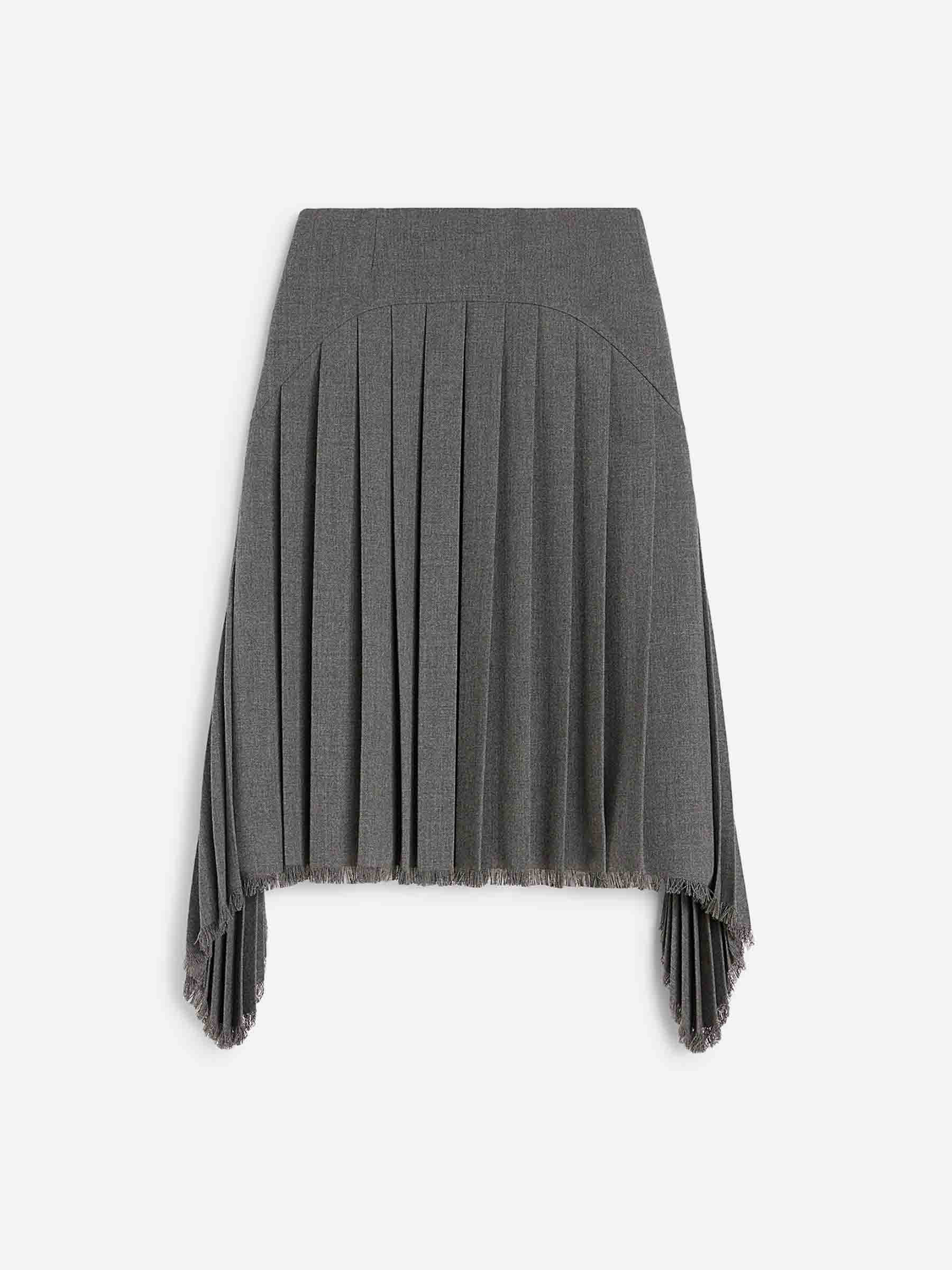 SKU: 750-001674 01 BRAND ID: J02MA0298 Pleated Midi Skirt Skirt By Jil Sander • Viscose lining • High waist • Curved yoke and hem • Regular fit • Made of wool canvas • Front and back pleats and side pleat detail • Side zipper closure Composition: 100% wool Italy