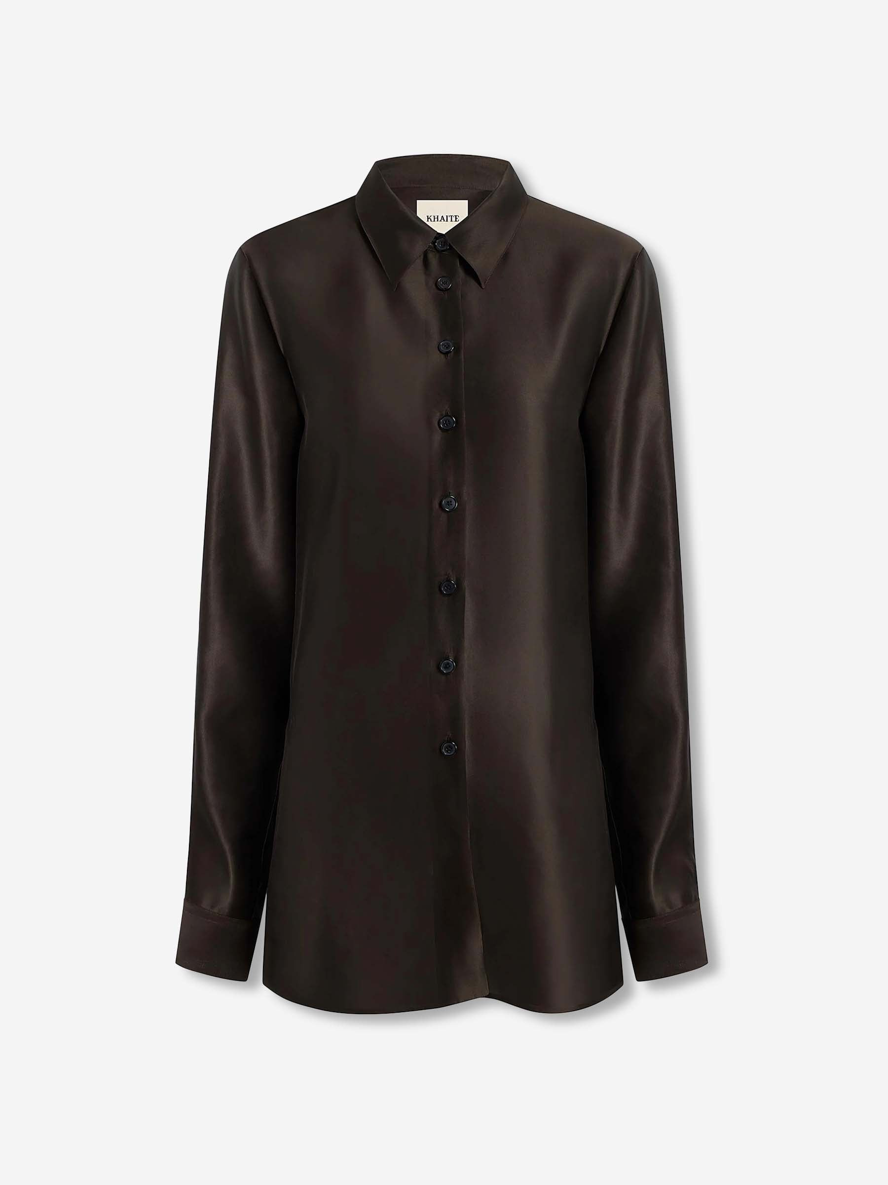 SKU: 701-002295 01 BRAND ID: 2412479 Silk Shirt Auryn Shirt By Khaite • Regular fit • Button cuffs • Made of silk and viscose twill • Plain shirt • Front button closure • Shirt collar Composition: 55% viscose, 45% silk Italy