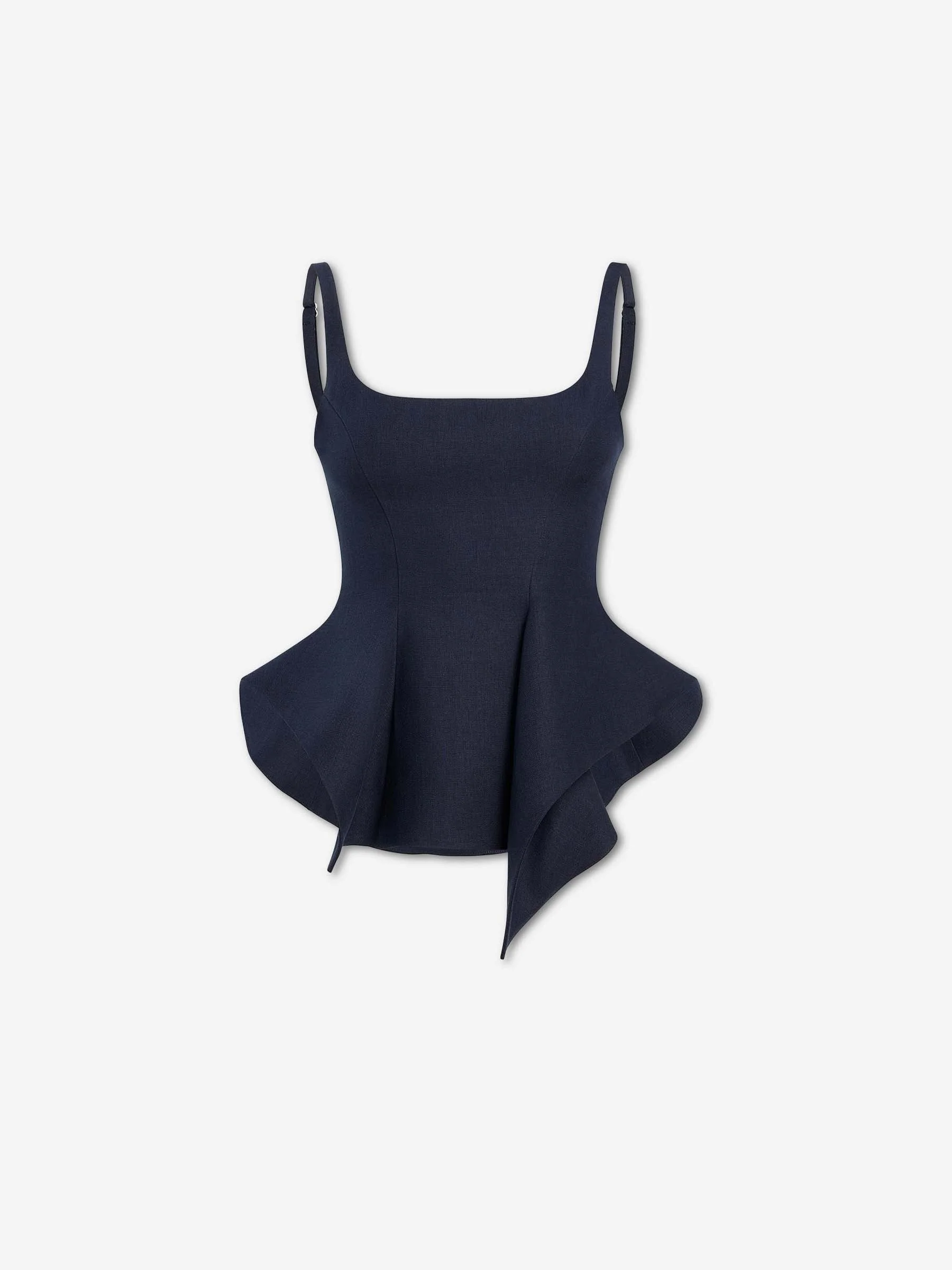 SKU: 703-002563 01 BRAND ID: 2469218 Top By Khaite • peplum cut • Made from linen fabric • Round neckline • Back zip closure • Adjustable straps • Draped volume • Composition: 100% linen • Made in: Italy