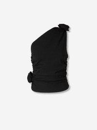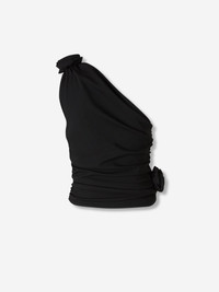 SKU: 703-002471 01 BRAND ID: 188925 Asymmetrical Top Top By Magda Butrym • Regular fit with one shoulder • Roses of the same fabric on shoulder and side • Made of elastic viscose fabric • Ruched details • No closure, easy access design • Asymmetrical collar 95% Viscose 5% Elastane. Italy